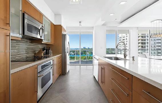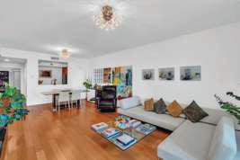 Remodeled corner unit with lots of light at Bay Harbor Islands, with large Master bathroom with walk-in-closet, office/second bedroom and visitors bath. All new bathrooms, A/C central units, washer & dryer, lighting fixtures, roll up curtains, high end flooring.