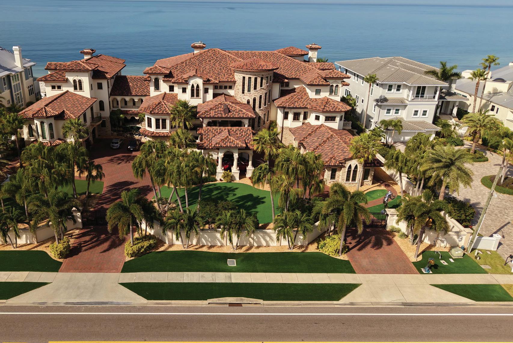 Welcome to Sandcastle on the Gulf! This one-of-a-kind Beachfront Estate embodies unparalleled luxury and resort-style living. This Mediterranean-inspired architectural masterpiece spans three lots and was built to the highest quality and design. This irreplaceable home showcases breathtaking Gulf views with 200 feet of private beachfront in the exclusive Town of Belleair Shores. Outdoors, enjoy a spectacular resort-style pool with a lazy river and a fully equipped grill area featuring refrigeration and ice - ideal for entertaining. Inside, discover a bowling alley, adding a unique experience. A temperature-controlled wine room and bar area complete with an ice maker, wine fridge, and kegerator elevate your hosting experience, while a cozy home theater offers the perfect space to unwind. The main kitchen and butler’s kitchen are outfitted with top-of-the-line appliances, designed for both functionality and style. For every day ease, the home includes four laundry rooms thoughtfully placed throughout. Wellness is redefined in the private gym, featuring a steam shower and sauna for complete relaxation. A separate 5,000+ square foot guest home with a private entrance provides comfort and privacy for your visiting friends and family. This is coastal living elevated to its highest form. With a price positioned more than $10 million below its estimated replacement cost, this offering is a rare opportunity to secure a legacy property and own a true Gulf-front Masterpiece at a compelling value. Refined living extends beyond the gates - a 2023 Rolls Royce Phantom accompanies the sale.