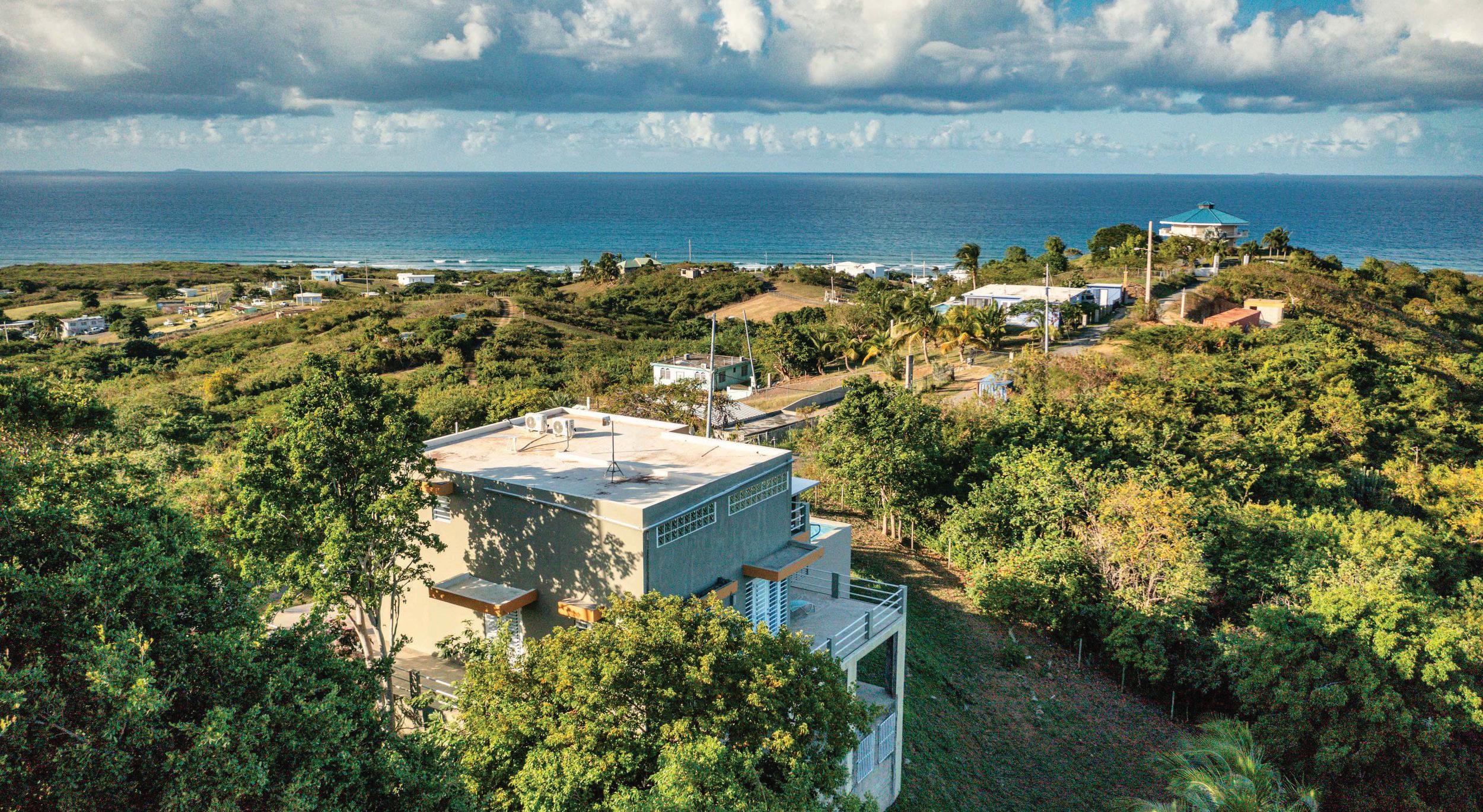 A tropical-modern residence oriented toward horizon and light. Elevated terraces, open-plan interiors, and wide Caribbean views toward Culebra. Pool and balcony lookouts complete the perspective. Clean lines. Constant breeze. Expansive sky.