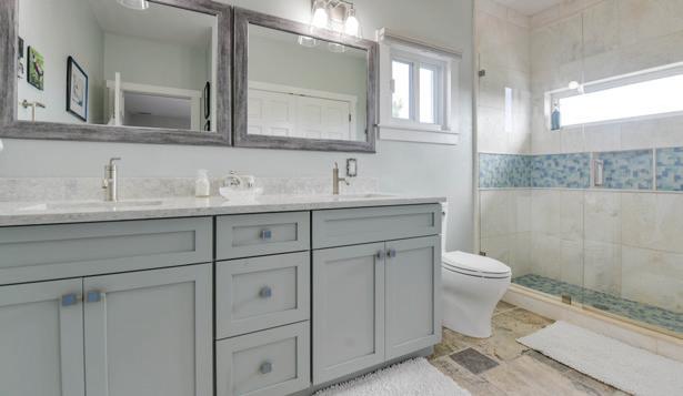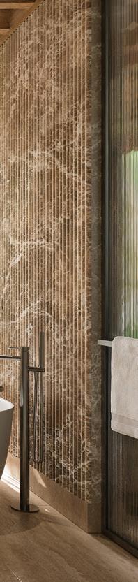 • Primary bathrooms have glass enclosed double showers, Hansgrohe brass fixtures, and signature Jade ceramic walls