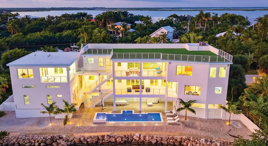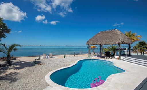 Set on 2.33 gated and ultra-private acres in exclusive Sugarloaf Beach, this 5,208 sq. ft. oceanfront estate is one of the most iconic properties in the Florida Keys—and a celebrated filming location from the blockbuster movie True Lies. The property features a rare 6-boat private marina with a protected boat basin, two lifts, and its own boat ramp—an almost impossibleto-replicate amenity today. Owners enjoy a private sandy beach, a lagoon-style resort pool, outdoor kitchen, multiple guest suites, and sweeping open-water views from nearly every room. This rare estate blends Hollywood history with unparalleled waterfront living in one of the most coveted locations in the Keys.