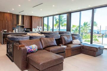 This ground-floor, direct ocean-facing unit features a private gated garden in Building One, protected by natural reefs and offering serene views across lush landscaping, a freshwater pond, and the sea beyond. Entry is through a custom handcrafted 2.5” steel-core door clad in cedar, set over an ipe threshold, designed to withstand hurricane-force conditions. The residence showcases the highest level of craftsmanship throughout: Belgian hurricanerated double-pane glass with Argon gas, electric storm shutters.