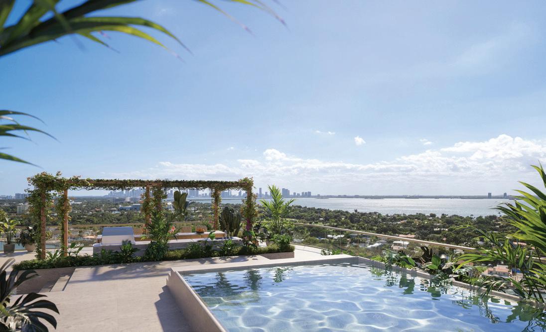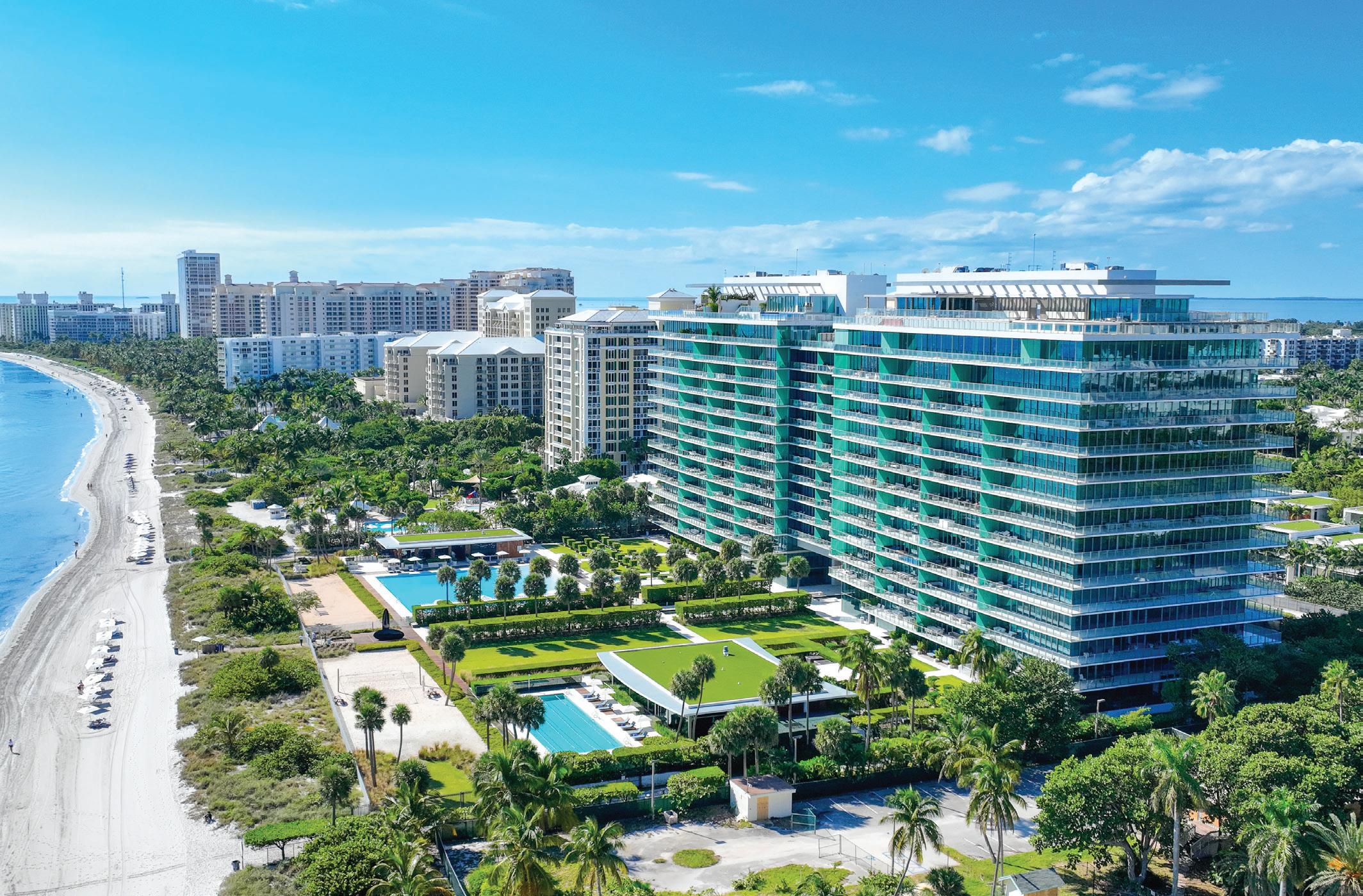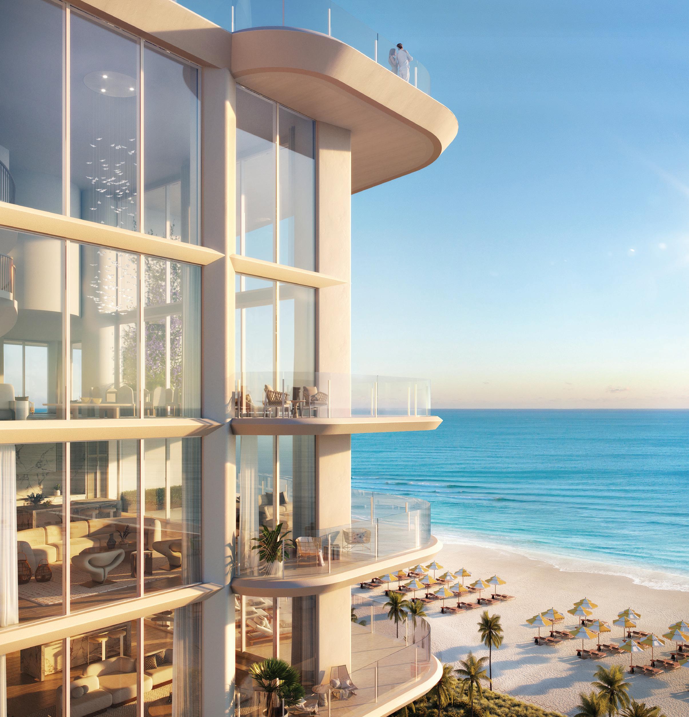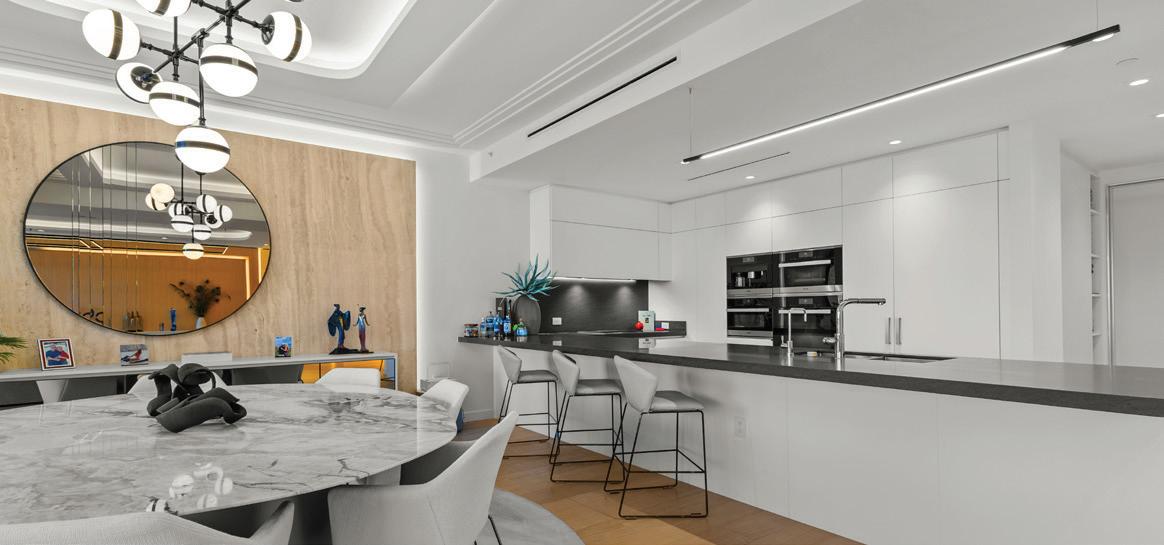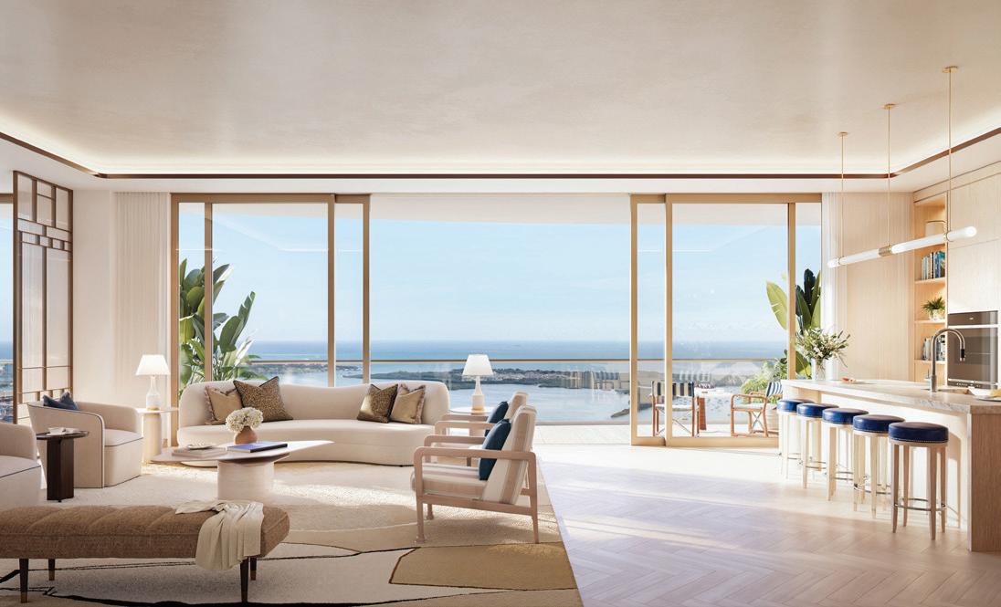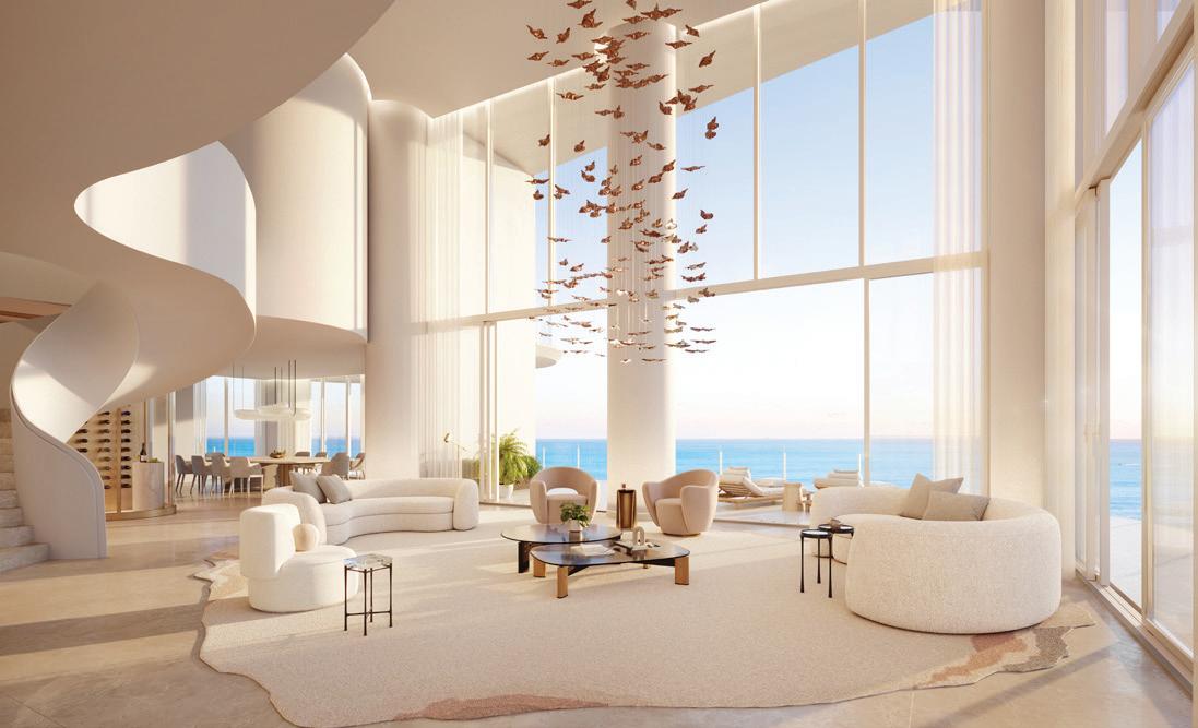 Residences feature Parquet de Versailles white oak flooring, custom RAMSA-designed cabinetry, natural stone surfaces, integrated Gaggenau appliances, tropical woods, and refined detailing. They’re positioned to capture uninterrupted Atlantic Ocean views while also overlooking adjacent green spaces and long sightlines toward the Miami skyline.