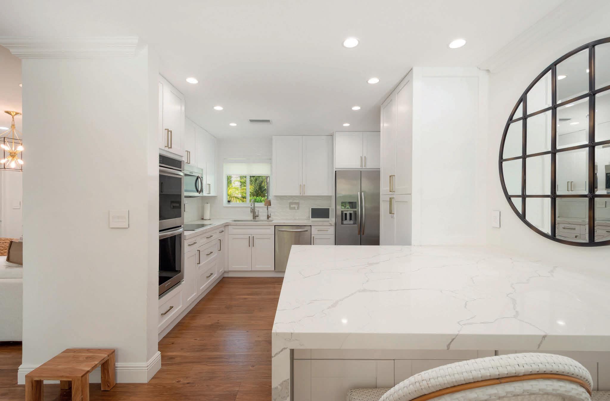 Beautifully and completely renovated in 2024, this stunning 3BD/2.5BA home in East Hollywood offers over 2300 SF of bright and spacious living. Loft area,2 car garage, and exclusive rooftop rights- perfect for a jacuzzi, bar, BBQ, or outdoor gym with a cold plunge- make this home truly exceptional. Soaring 10FT ceilings enhance the open feel, while the chef’s kitchen features Silestone counters, a five-burner gas stove, double ovens, stainless steel appliances, and a large peninsula with wine cooler and added cabinetry. Wide-plank European white oak floors, elegant glass railings, and eight-foot frameless glass doors add a modern, upscale touch. A large covered patio with natural gas BBQ setup, and a serene fish pond creates an ideal outdoor retreat. Impact windows provide peace of mind, and the primary suite offers a private balcony, walk-in closet, and luxurious ensuite bath. Fully fenced with beautiful landscape and lighting, the property is minutes from Hollywood Broadwalk, beaches,dining,shopping and places of worship. With very low monthly maintenance, this turnkey home is priced to sell- you won’t want to miss it.