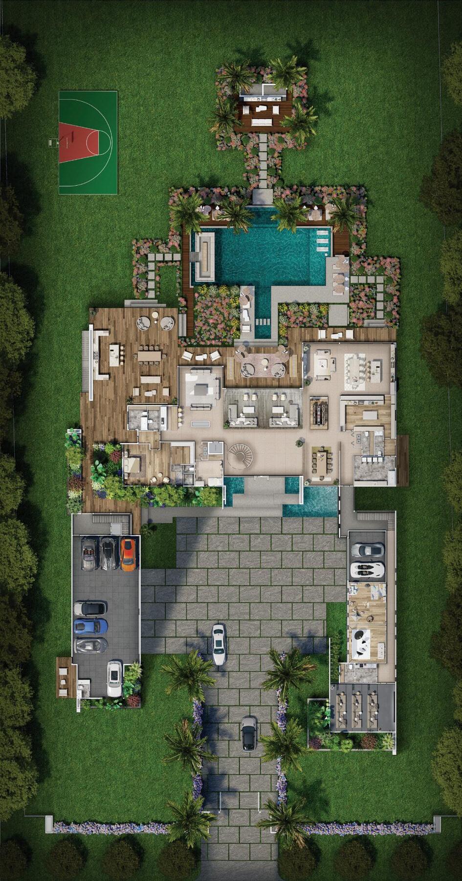 The residence enjoys proximity to beaches, dining, shopping districts, and cultural venues while maintaining distance from the pace of Miami’s core neighborhoods. Sans Souci Estates’ guardgated environment adds an additional layer of privacy, making it appealing to buyers who value both discretion and accessibility.