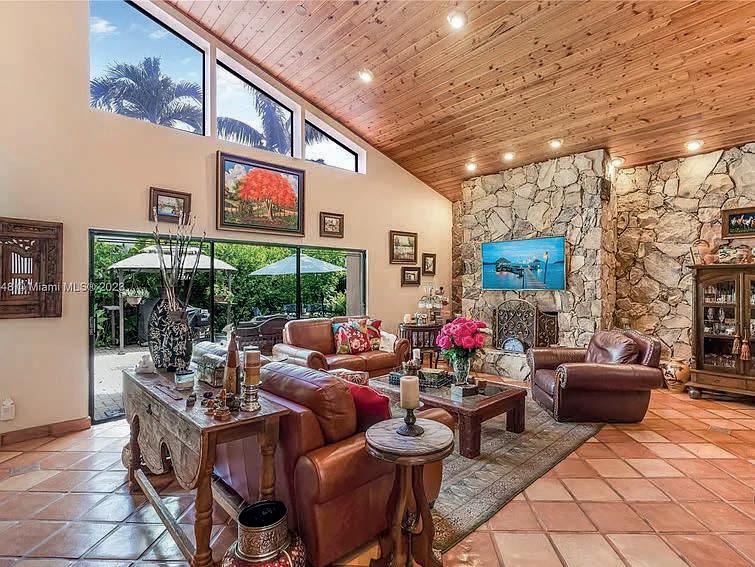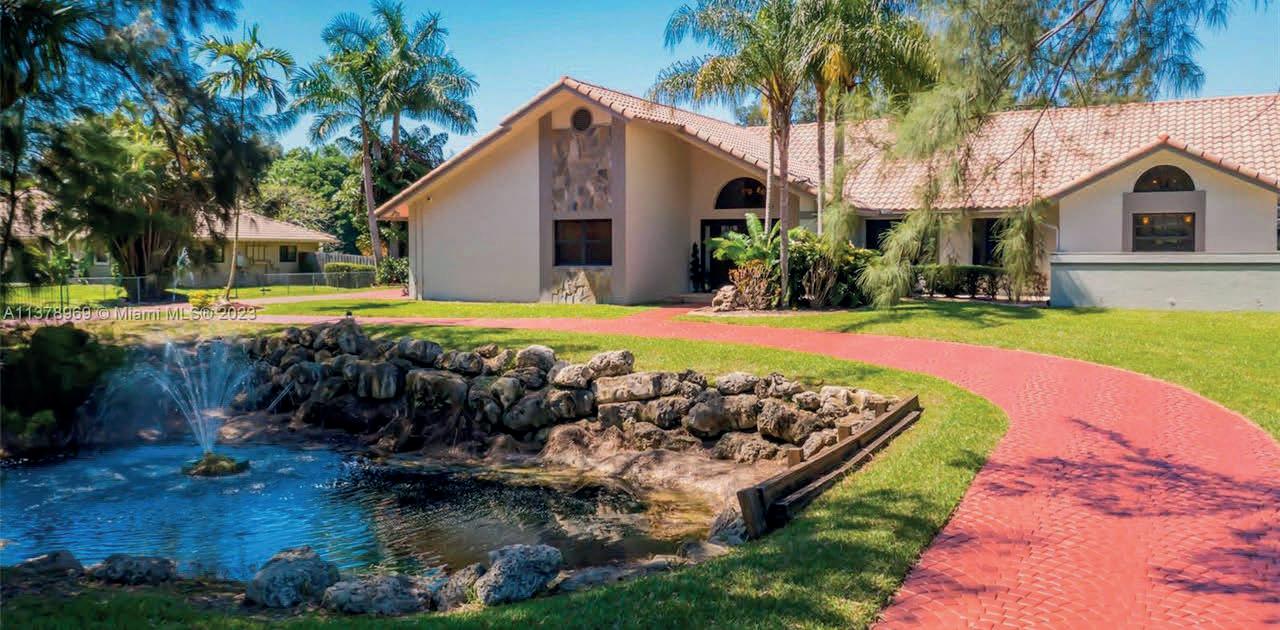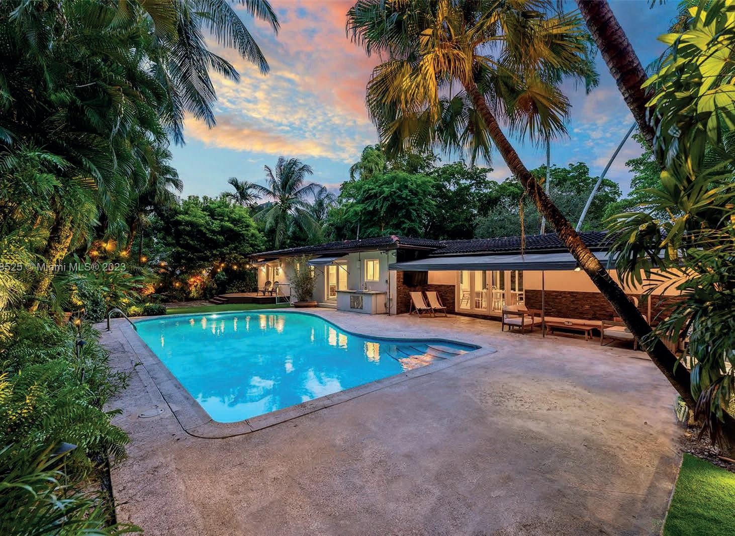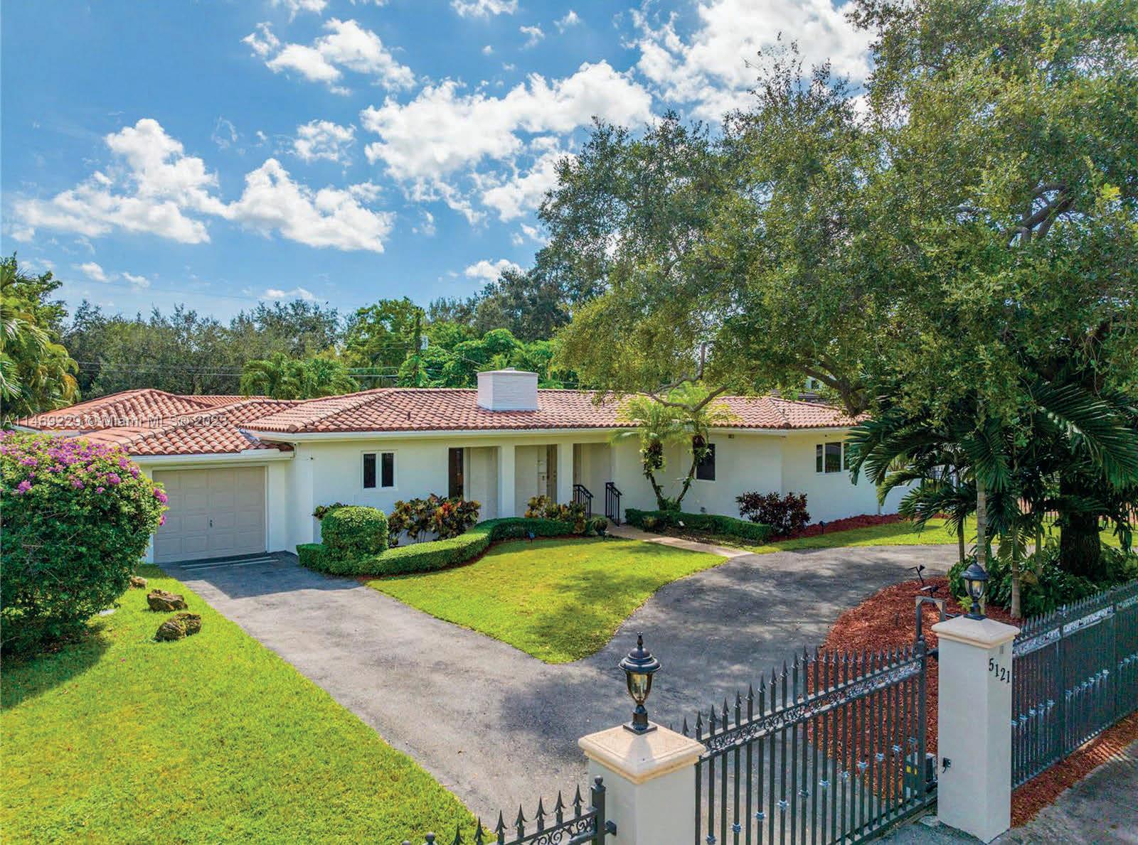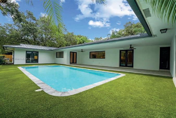 This one-story 4,233 sq ft Pinecrest residence is nestled on an impressive 37,897 sq ft lot with completely renovated 5 bedrooms and 3/1 bathrooms. The split floorplan features 2 master suites, spacious flow-through layout including foyer entry, formal living, family room, dining room, breakfast nook, with volume ceilings throughout. All new Kitchen with Bosch appliances overlooking the large covered patio, swimming pool with surrounding artificial turf, and additional expansive grounds and mature trees. New metal roof, impact windows and doors. 2 car garage. Great location – situated minutes from A+ rated schools, dining, and expressways.