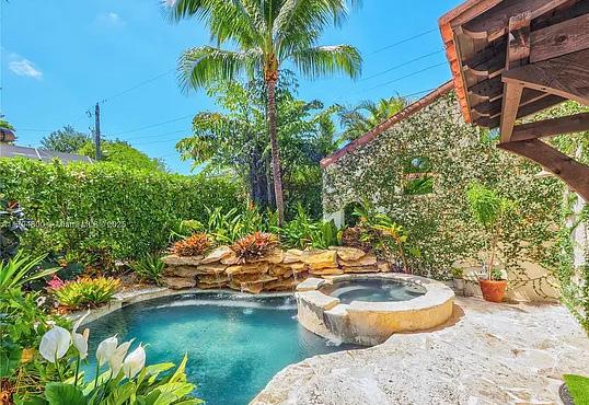Experience the best of Miami living in this beautifully maintained 3-bedroom, 3-bathroom home on a quiet, tree-lined street. (Home can easily be converted back to a 4- or 5-bedroom layout to fit your needs.) Soaring tongue-and-groove ceilings create a warm, open feel, while light-filled living areas and a modern kitchen make everyday living and entertaining effortless. This home features two master suites, perfect for multigenerational living or hosting guests with comfort and privacy. The spacious primary ground-floor suite includes a private loft with a balcony overlooking the beautifully manicured backyard, pool—ideal for a home office or reading retreat. A spa-inspired bathroom and generous closet space complete this relaxing retreat. Step outside to your private backyard oasis with a sparkling pool, perfect for relaxing or entertaining under the Florida sun. Located near top schools, parks, and shopping, this home offers comfort, flexibility, and a lifestyle you will love in one of Miami’s most desirable neighborhoods.
