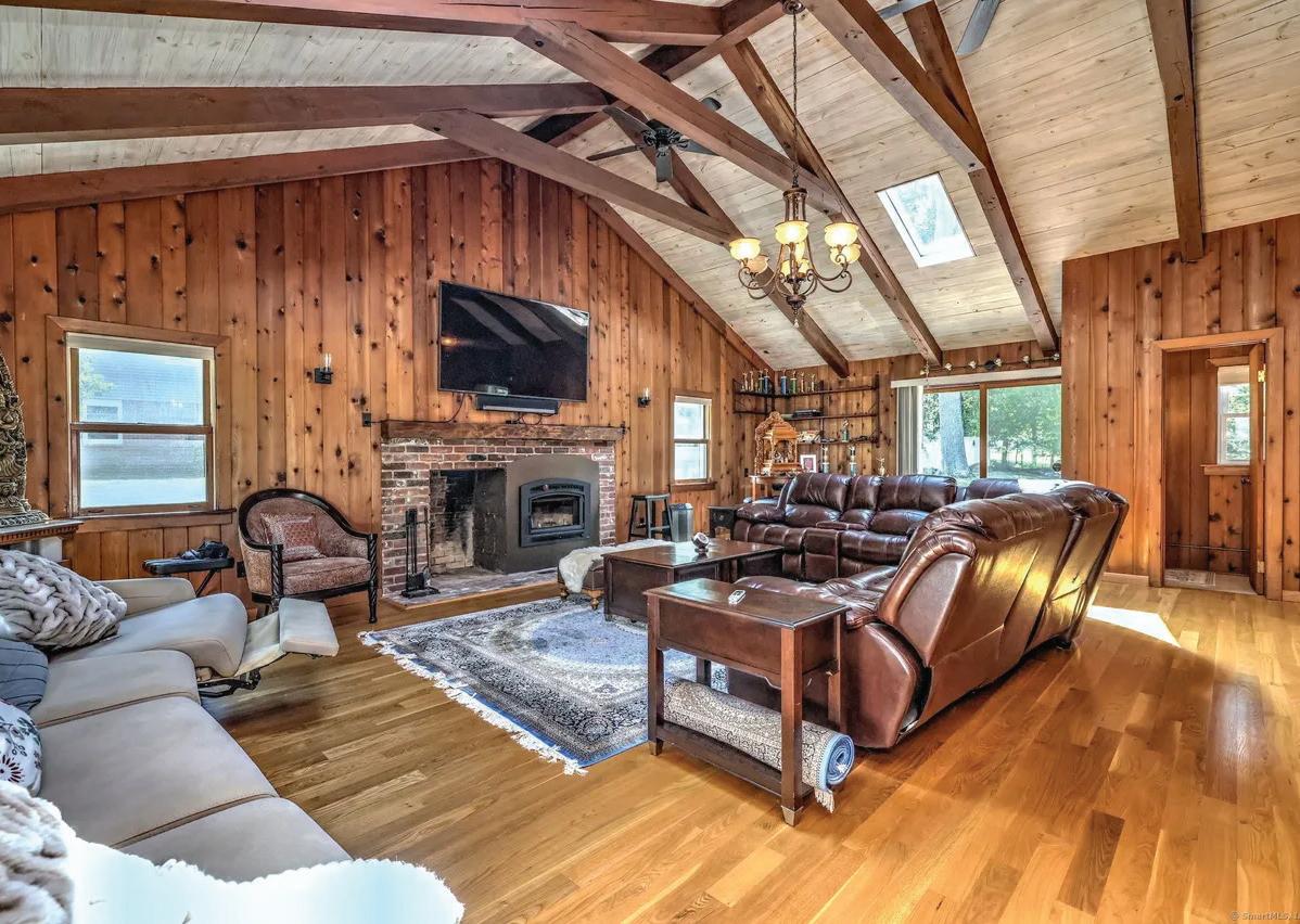 4 BED | 4 BATH | 2,894 SQFT. Welcome to 700 Royal Lane - a beautifully updated 4-bedroom, 3-bath home set on a serene .85-acre lot. With nearly 2,900 sq. ft. of living space, this home offers a perfect blend of style, comfort, and versatility. The renovated kitchen features recessed lighting, a tile backsplash, ample counter space, and a generous dining area for everyday meals. Spacious living room is highlighted by a cozy stone fireplace and warm recessed lighting. The family room is a show stopper featuring vaulted ceilings, wood beams, a fireplace and a half bath! A spectacular extra-large 3 season room with vaulted ceilings, skylight, ceiling fan, and countertop space is surrounded by windows, and a flooding the space with natural light. Walk right out the door onto a deck overlooking the private yard. The primary bedroom offers generous closet space and an updated bath, while three additional bedrooms provide plenty of room for guests! Enjoy the privacy of the large backyard, a beautiful patio for entertaining, the convenience, and easy access to I-95, the Merritt Parkway, shopping & dining! This home really has it all!