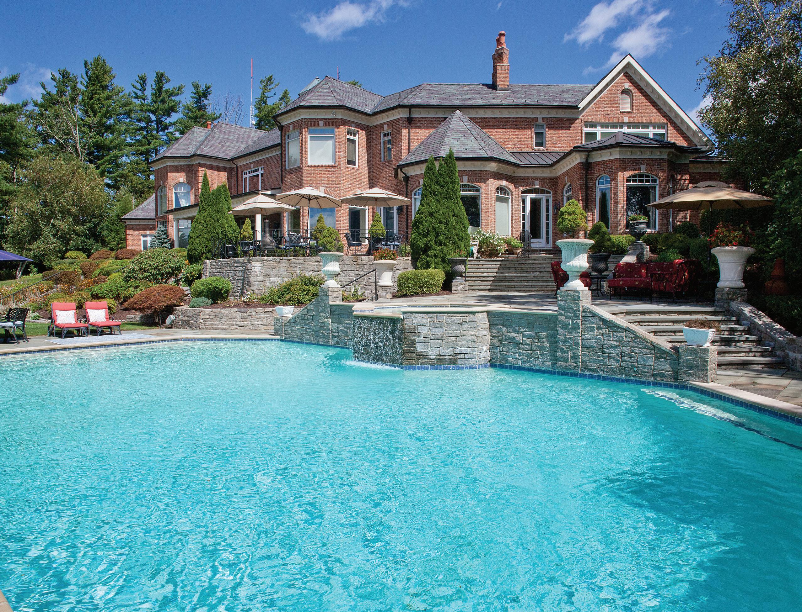 Luxury at its finest - Views, Privacy & Prominence in this prestigious European inspired gated estate anchoring this sought after cul-de-sac community. Timeless elegance abounds inside & out starting w/ 3.9ac of pristine landscaping including lush gardens, covered verandas, terraces, heated pool w/ spa & waterfall, gazebo, tennis court & 4+ car garage w/ room for lifts, for a true car enthusiast! Guests are greeted w/a grand 2-story reception hall lined w/ Limestone flrs, columns & sweeping staircase luring you into inspiring 12rm/10,990 sq ft flawless living. Each ample room offers abundant natural light, soaring ceilings & effortless flow. Gourmet Kitchen w/ high-end appliances, brand new butler's pantry & a quiet dining area w/ breathtaking views. Formal dining w/ French