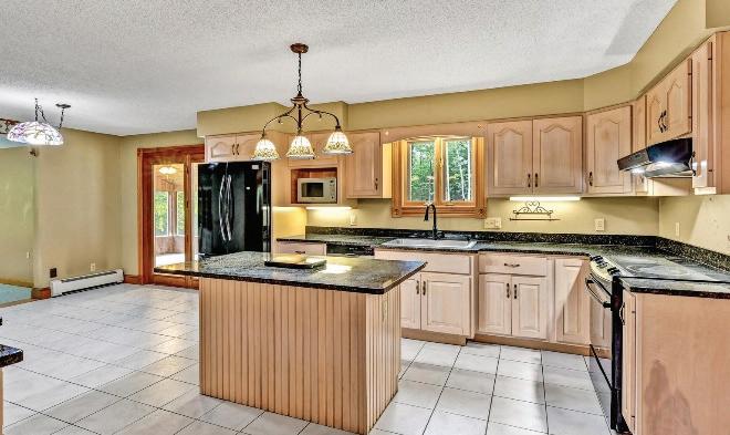 Well built home overlooking Phillips Lake in Dedham with its own dock for kayaking pleasures. The house has many unique spaces plus a two car garage attached. The views invite a peacefulness and all around well being.