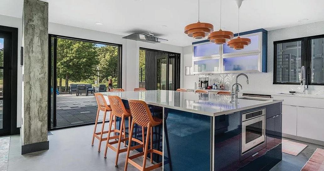Contemporary home on 11.8 acres with stunning Lake Champlain views, gourmet kitchen, dual primary suites, spacious living, and luxury amenities.
