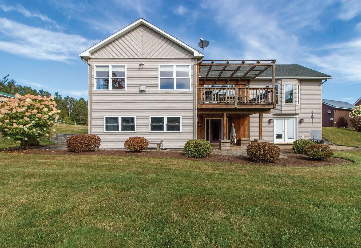One of a kind lakefront retreat fully furnished and turnkey including indoor and outdoor furniture, dock, most linens and more. Fully remodeled in 2024 blending contemporary style with European elegance this 5-bedroom, 4-1/2 bath home has so much more for someone looking for a first class escape or permanent lake house. Luxurious primary suite on the main floor with separate dressing area and beautiful bathroom with soaking tub and walk in shower. Stunning European style gourmet kitchen with black marble counter tops and top of the line appliances and includes most glasses, plates, silverware and cooking equipment so you can move right in. Finished basement that steps out on to another patio toward the lake with additional living area and plenty of room for extra guests with four full size bunk beds. The upper level has 4 more bedrooms and baths with very creative layout. All decks and patios have very comfortable furnishings for enjoying day and night on the lake along with a cedar sauna and wood fired cedar hot tub. The lake side lot is 1.6 acres with 255’ on the water with a small beach and the back lot across the road is another 1.77 acres with trails and flat area for an additional building site or barn.