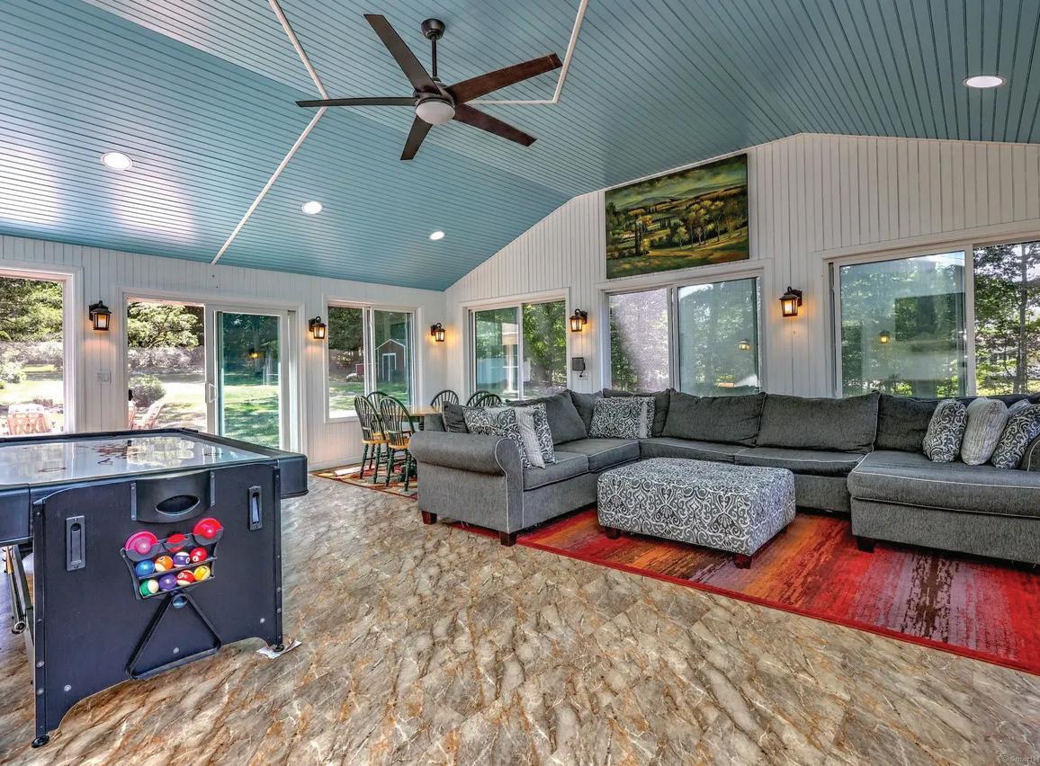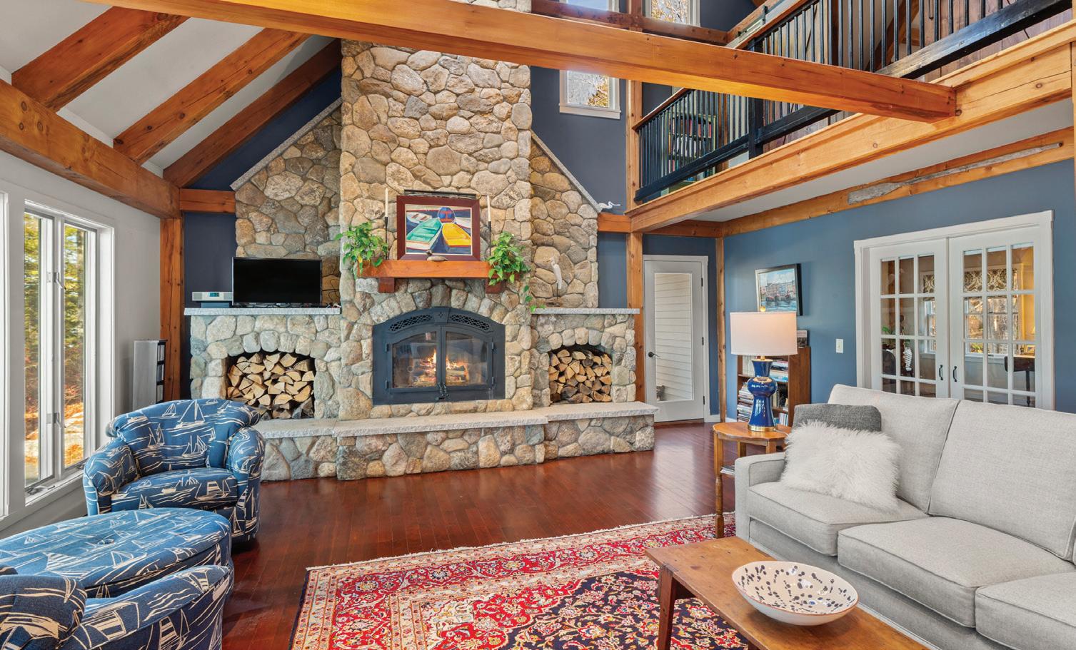 A hand-carved staircase and gourmet kitchen anchor the home’s thoughtful design, flowing into elegant living and dining spaces and a great room with a wood-burning hearth. The three-season porch and Italian-imported pizza oven invite alfresco gatherings beneath the stars, all supported by a state-of-the-art geothermal system for year-round comfort.