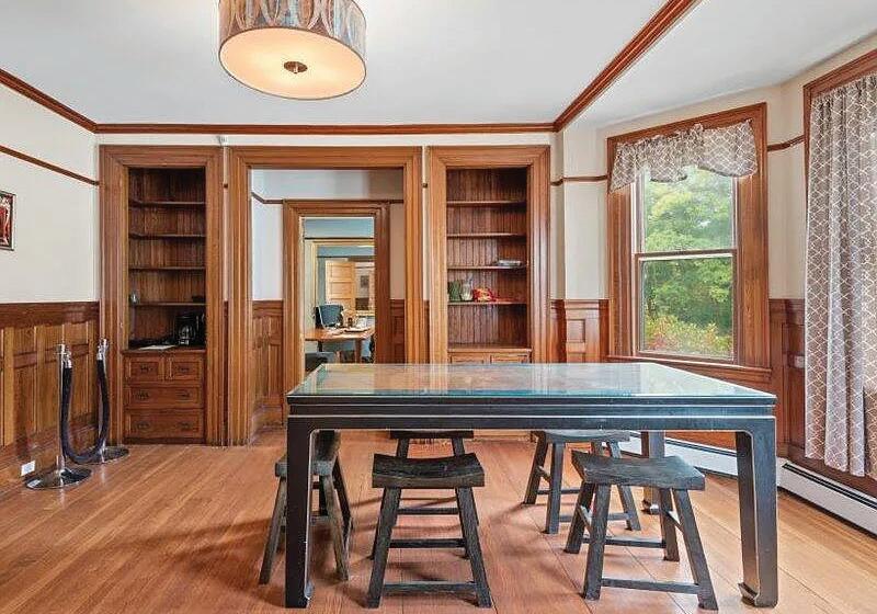 Stately and welcoming, this Victorian-farmhouse sits on a generous 0.63-acre lot with direct frontage on the St. Croix River—a rare combination of intown convenience and quiet waterfront living. Once operated as the well-reviewed “Calais Crossing River House” bed-and-breakfast, the home offers strong flexibility: continue as a small lodging venture, create a spacious single-family residence, or blend both uses. The layout is practical for daily living. A first-floor bedroom and full bath provide convenience, while three additional bedrooms and another full bath are located upstairs. The home retains its period character with built-ins and traditional trim, balanced by an easy-working, eat-in kitchen with pantry and access to the back deck. A laundry area with sink sits on the main level. Outdoors, the property opens to a level, landscaped yard leading down to private river frontage—ideal for kayaking, fishing, or simply taking in the calm of the water. The deck offers a pleasant spot for morning coffee or warm-weather meals. Despite the peaceful setting, the location is convenient to most things: shops, services, and community amenities are just up the street. With its combination of space, historic style, and direct water access, this property stands out as a strong value in the Calais market and an appealing option for anyone looking for a home or business opportunity along the St. Croix.