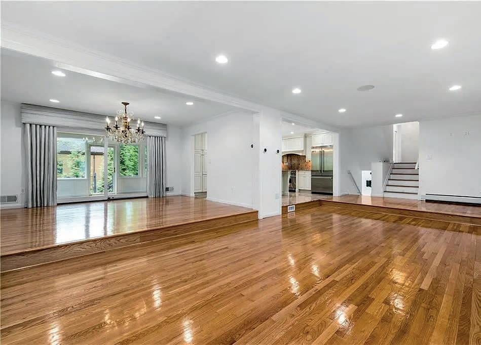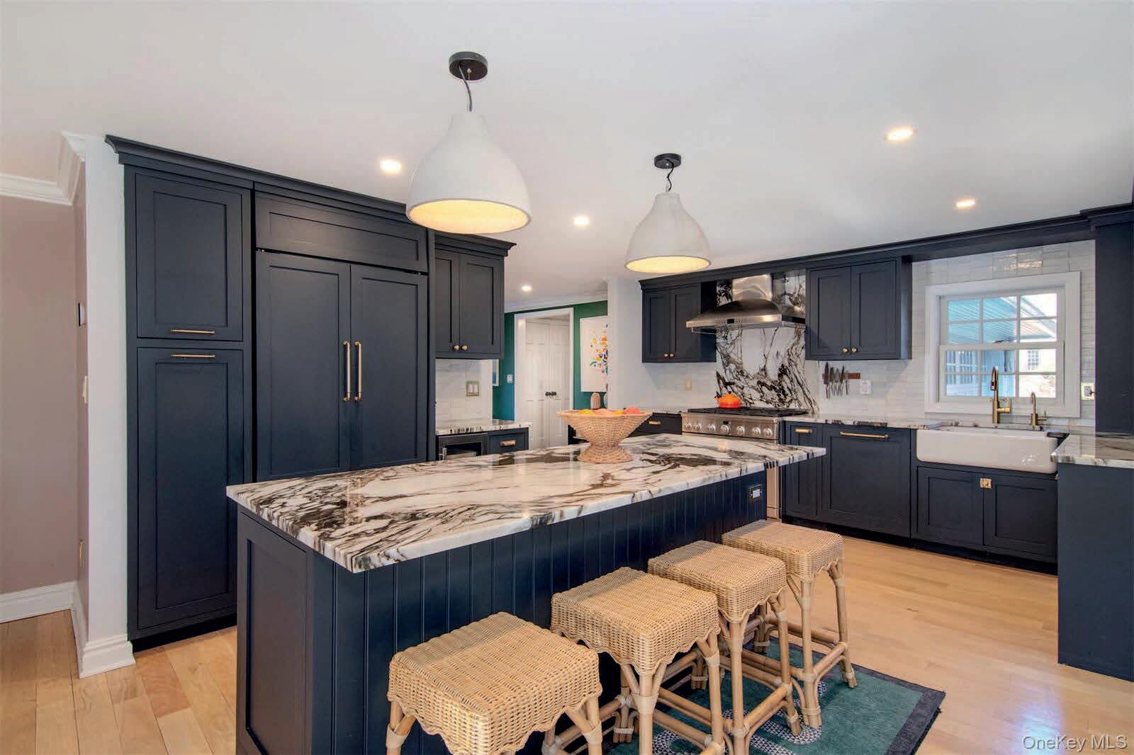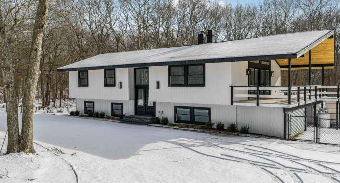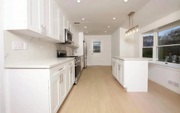 Welcome to 105 Old Riverhead Road, Experience the best of the Hamptons living in this great High Ranch, modern elegance Perfectly positioned on a spacious 1 acre lot in the heart of Hampton Bays, where this home being renovated throughout offers 4 bedrooms, 3 bathrooms, and over 2,600 sq ft of meticulously designed. The welcoming covered balcony on the side and rear set the stage for year-round indooroutdoor living. Inside, the home impresses with soaring ceilings, oversized Andersen ENERGY STAR windows. Throughout the home, upstairs, wide-plank white oak hardwood floors add warmth and character, while the designer kitchen features Avanti quartz countertops, stainless steel appliances, 3 bedrooms filled with natural light, along with 2 wellappointed bathrooms throughout and sleek finishes ideal for both everyday living and entertaining. Downstairs, the thoughtfully designed layout includes 2 bedrooms, laundry, full bathroom and the recreation space offers bar zone and wine fridge. The ultimate retreat.