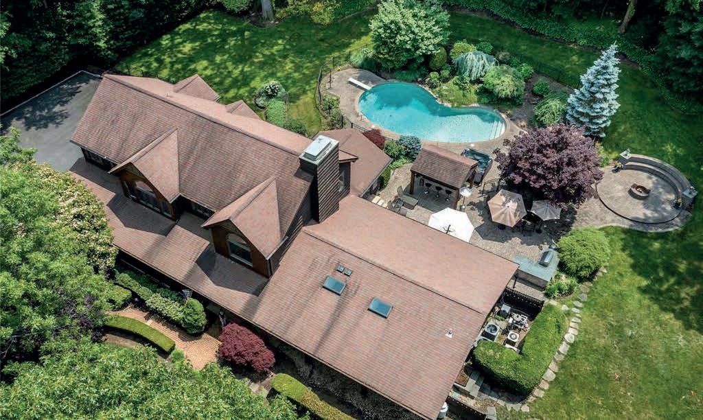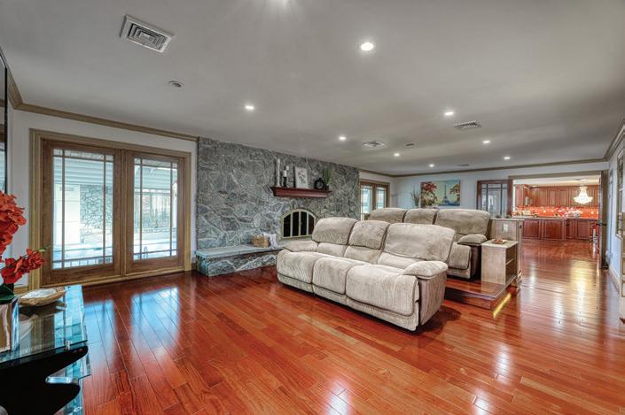 LARGE BRICK RANCH SET ON AN OVERSIZED 2.67 ACRE PROPERTY offering expansive one floor living, with two bedrooms located on the second floor. A massive indoor pool is accessible from the main and lower levels, creating a true resort-style experience yearround. The outdoor tennis/basketball court features 240V lighting, while the lower level provides ideal recreation and gym areas. The home offers two kitchens, two fireplaces, six bedrooms, six full and one half baths and a private movie theater. The main kitchen is equipped with state-of-the-art appliances and opens to a large breakfast area and sun-filled solarium overlooking the beautifully landscaped setting. $3,700,000