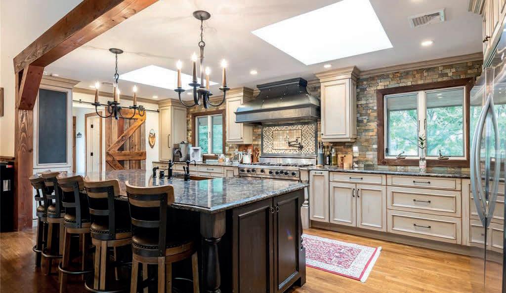 The home offers approximately 3,460 square feet of fully finished living space, complemented by an impressive new garage built in 2022, designed to accommodate four vehicles with extra-tall doors, high-end wall-mounted openers, 100-amp electrical service, and additional attic storage. Including garage lifts, the property provides parking for up to five vehicles—a rare amenity for a lakefront estate.