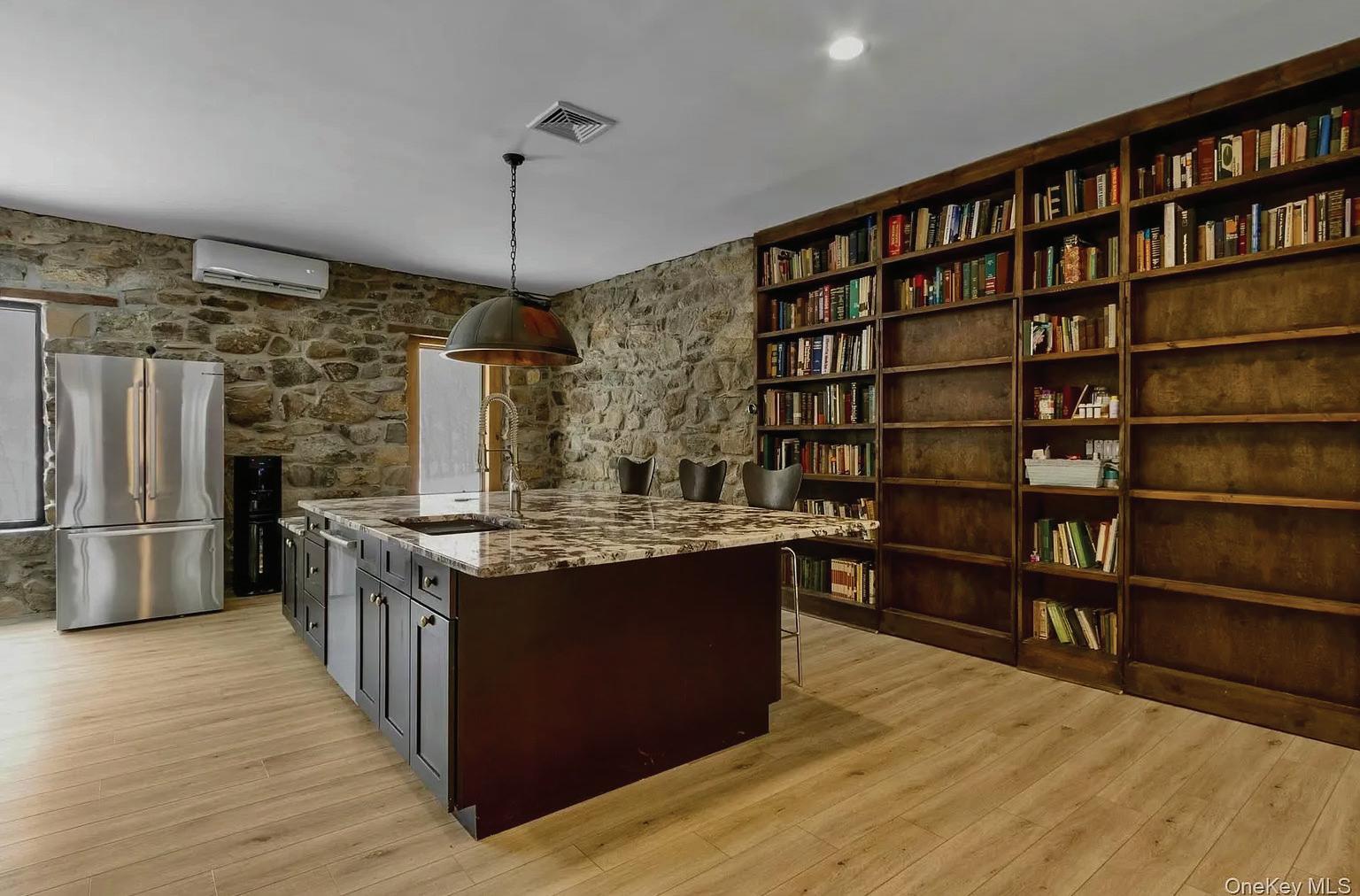 Extensive renovations completed in 2022, with the owner investing over $650,000 (receipts available), thoughtfully blending timeless character with modern infrastructure. The main residence showcases expansive lake views, hardwood floors, a restored stone fireplace, allnew electric, new roof, all new leaf gutters front, back and on garage, new windows and doors, new insulation, and a new central AC system with all new ductwork. Two fully restored bluestone patios—one in the backyard and another above the studio apartment—offer exceptional indoor-outdoor living overlooking the lake.