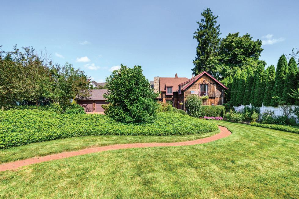 There is an amazing long-stoned paver walkway from the street leading up to the entrance of the home (similar to strolling the yellow brick road). This corner Tudor home has seven large rooms, two and a half bathrooms, and a side entry oversized attached two-car garage with interior access. As you approach this home you are adorned by this arched gothic doorway. As you enter, you are immediately drawn to the interior rotunda. From the rotunda, you have a choice of walking to the lower level of the home through a solid eight panel wood door, or ascending a few wooden steeps, you reach an open hallway where you can choose your destination. Your choices would be the formal dining room, the enormous living room with a fireplace, a versatile office or bedroom, eat-in kitchen, or the washroom. As a corner property, the abundance of windows allows for considerable natural light to fill every room.