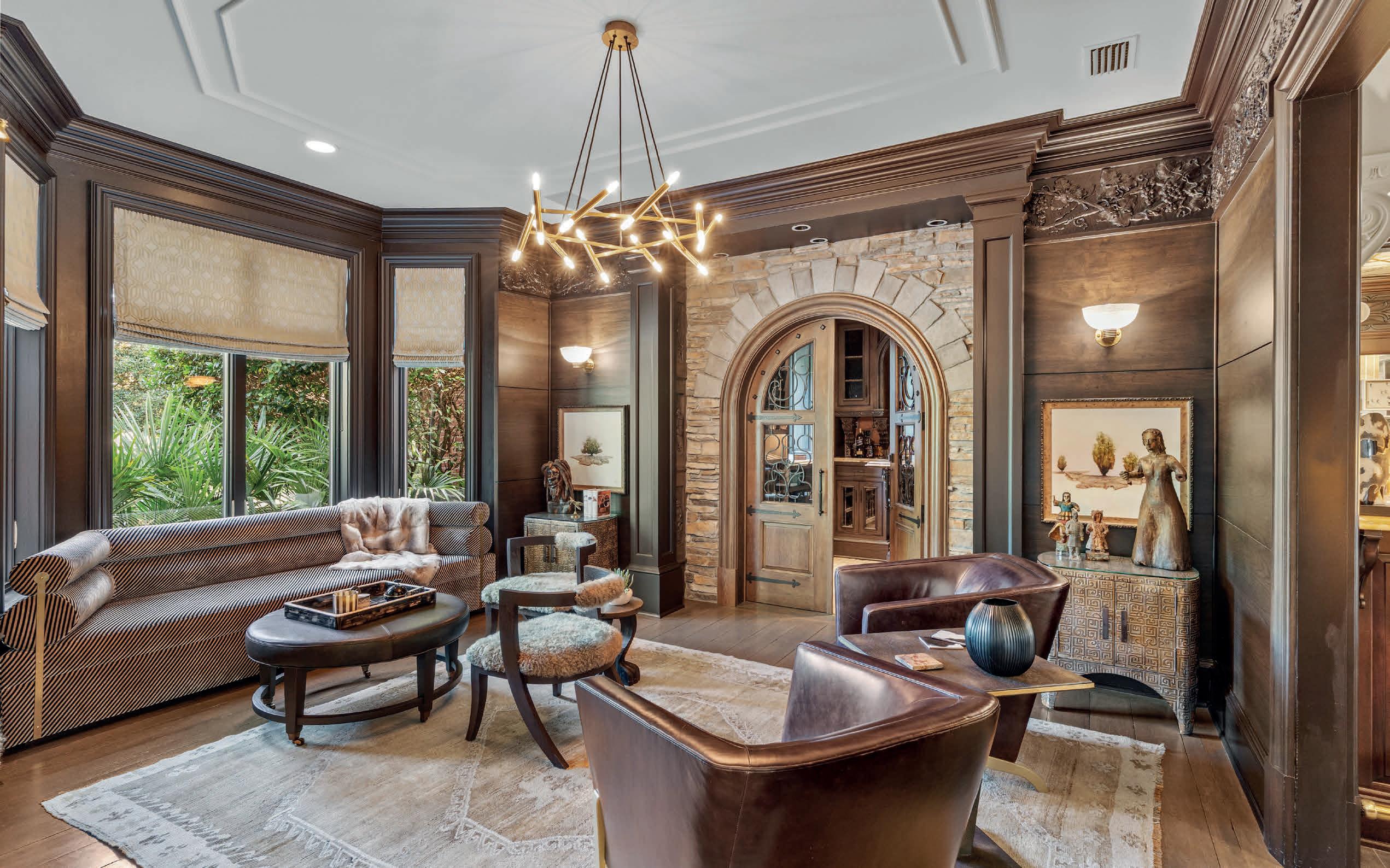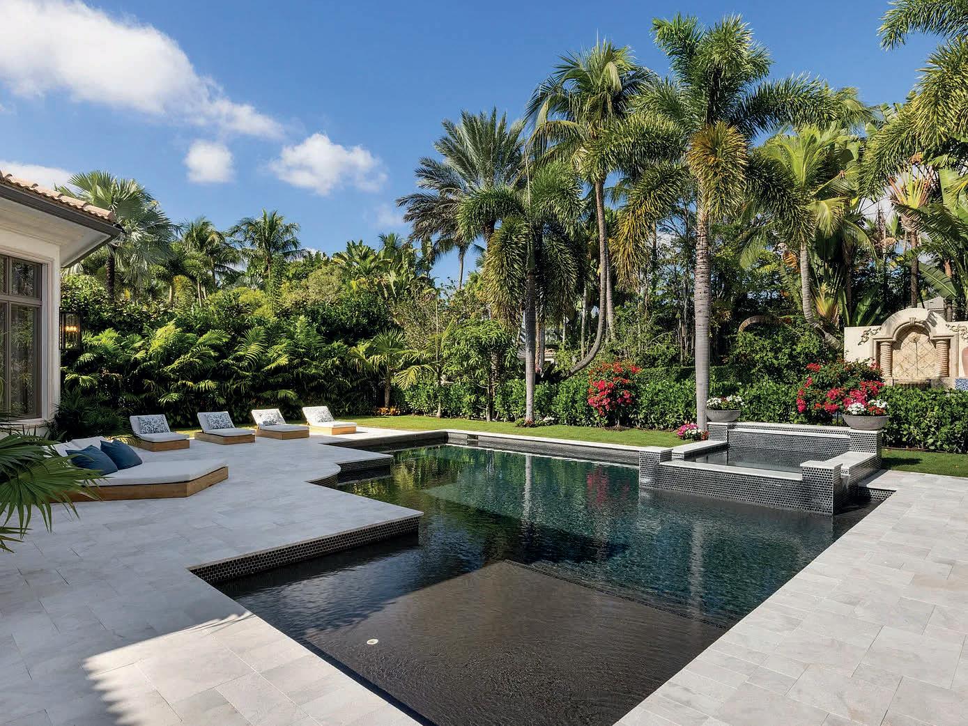 This fully reimagined 4-bedroom, 4.2-bath estate offers modern Palm Beach luxury in the exclusive gated community of Old Palm. Completely transformed, the home features new landscaping, manicured hedging for privacy, a resort-style screened outdoor lounge and dining area, and a heated pool with shaded pet-run. Inside, natural light, French oak floors, custom millwork, and clean architectural lines create an elegant, inviting atmosphere. The chef’s kitchen includes Wolf, Sub-Zero, and Bosch appliances, bespoke cabinetry, hidden pantry, and dedicated water filtration, with a nearby bar and media room for entertaining.