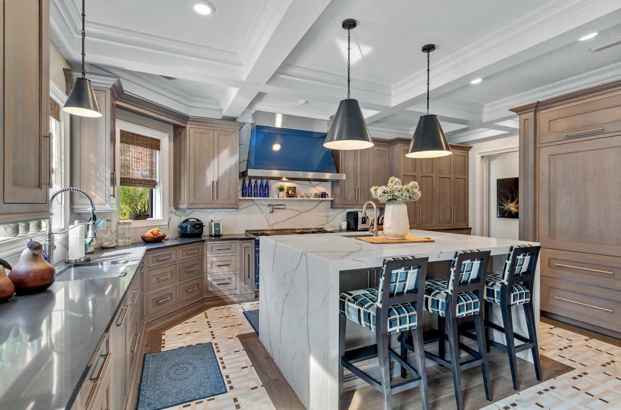 bar, perfect for entertaining. Further, there is a separate laundry room, a laundry chute, and a separate entry into your oversized two-car garage.