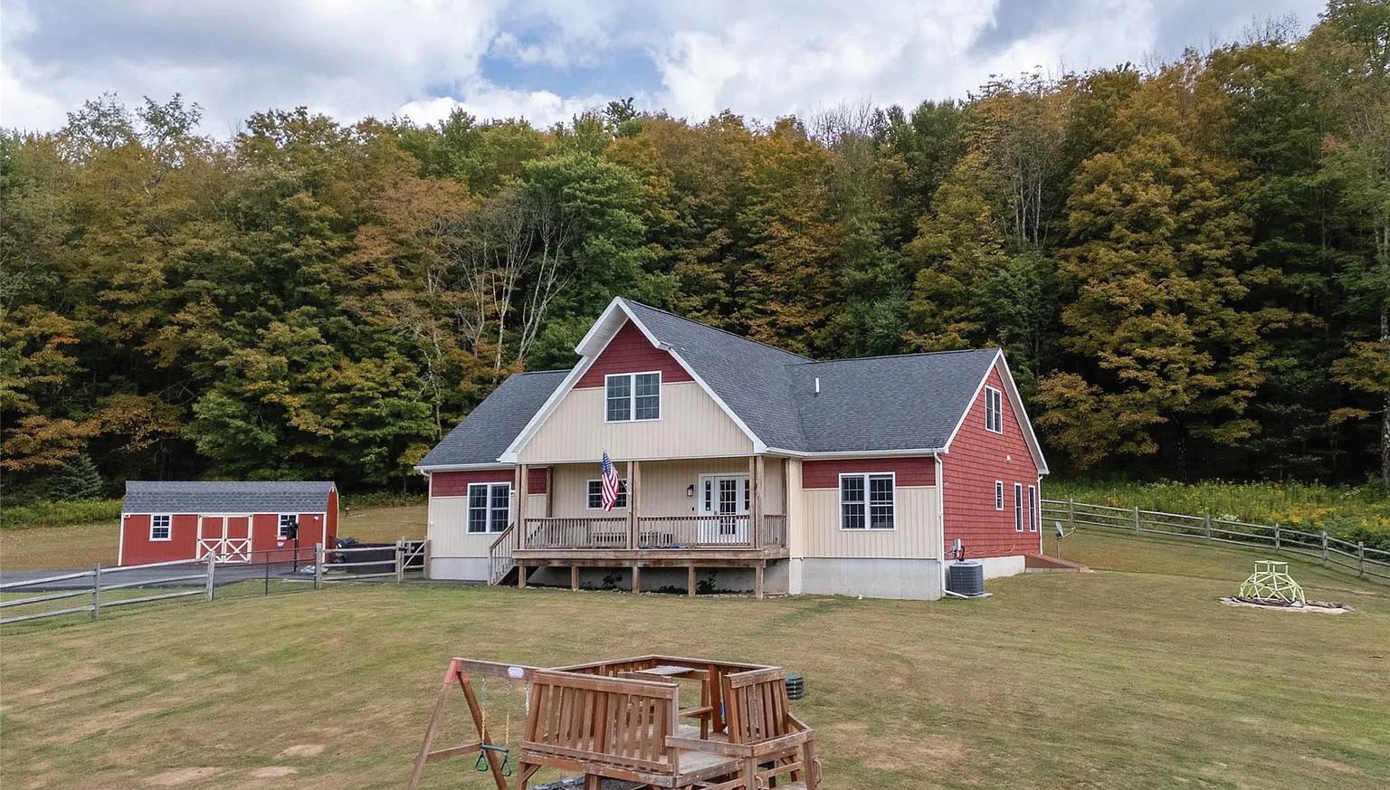 Set on 12 private acres just minutes from Roscoe, Callicoon, and Jeffersonville, this beautifully updated 5-bedroom, 3.5-bath country contemporary offers a refined blend of modern comfort and rural serenity. Built in 2017 and thoughtfully enhanced by the current owners, the home features a bright, open floor plan with soaring ceilings, wood floors, and walls of windows. The chef’s kitchen includes granite countertops, cherry cabinetry, stainless steel appliances, a propane cooktop, and raised oven, flowing seamlessly into a relaxed eat-in space. A second-level balcony overlooks the great room, creating inviting reading and seating areas. The primary suite includes a private office, while four additional bedrooms accommodate family and guests. The finished lower level offers a media area, pool table, workout space, bath, and workshop. Outside, enjoy porches, a back deck, hot tub, fenced yard, and open acreage. Just two hours to NYC via Route 17/86.