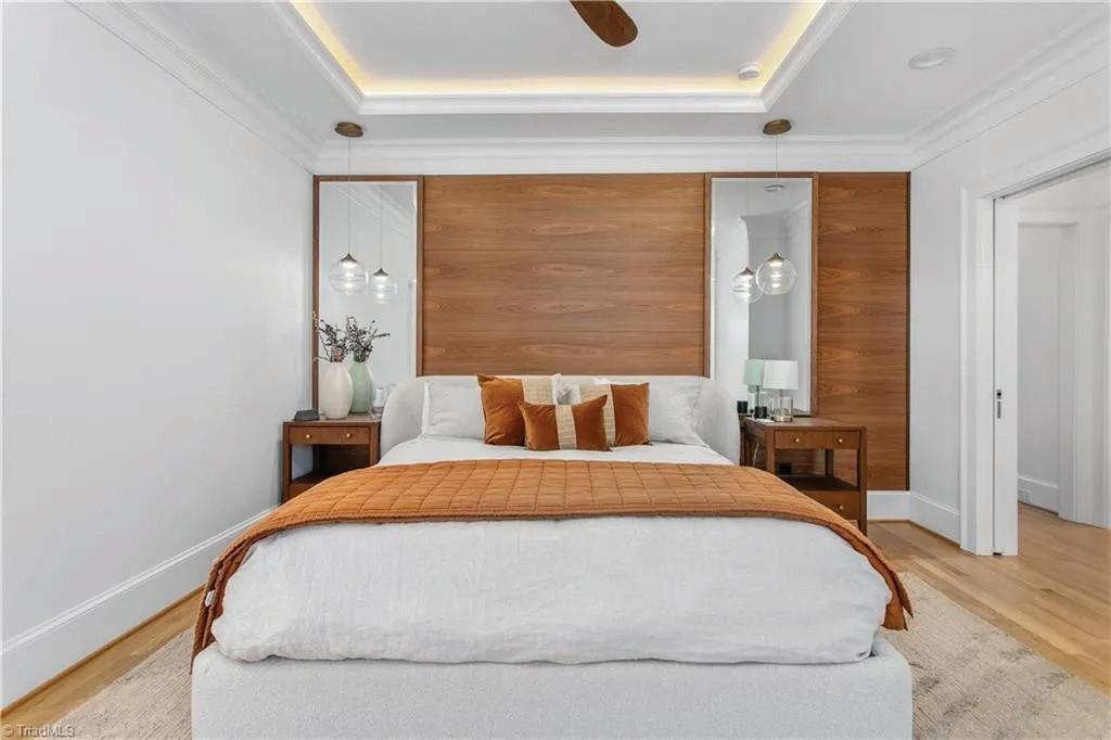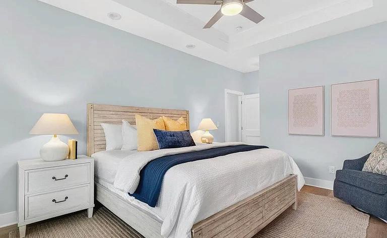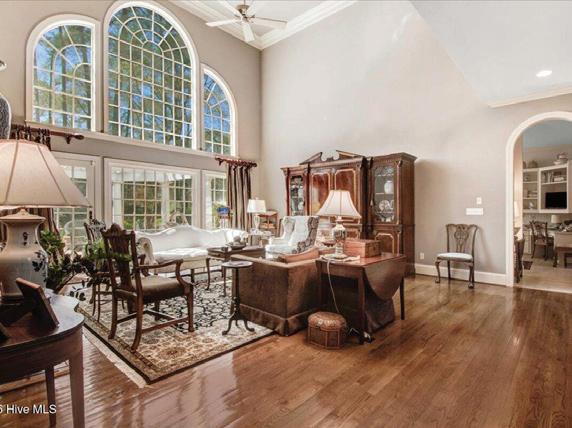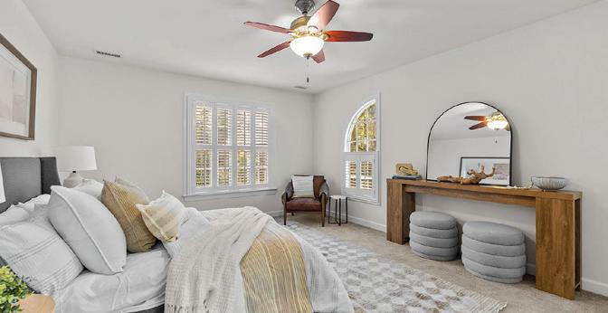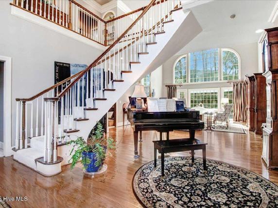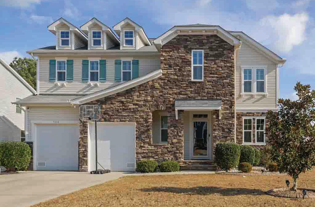 Discover refined living in this exquisite all-white brick estate in one of the Triangle’s most prestigious communities, Colvard Farms. This 5-bedroom, 4-bath home offers primarily main-level living, blending architectural elegance with everyday comfort. Inside, soaring coffered ceilings, sun-filled spaces, and designer finishes create a warm yet sophisticated atmosphere. The expansive primary suite features a spa-inspired bath and dual walk-in closets, while additional main-level bedrooms and a private office or guest suite provide flexibility.