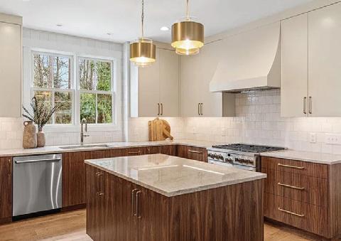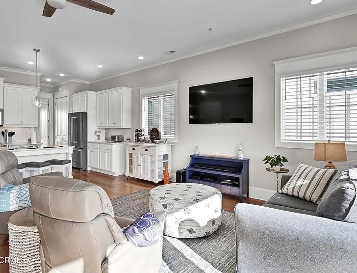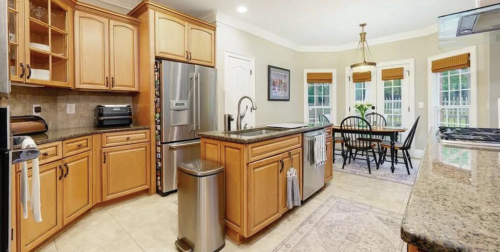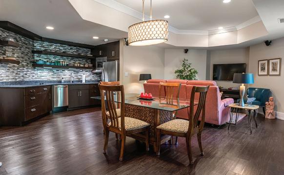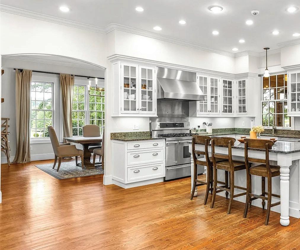 A private 1,100-square-foot guest suite on the lower level extends the home’s versatility with a full kitchen, dining area and home theater. Smart-home features, including two Tesla EV chargers and an integrated security system, enhance comfort and convenience throughout.
