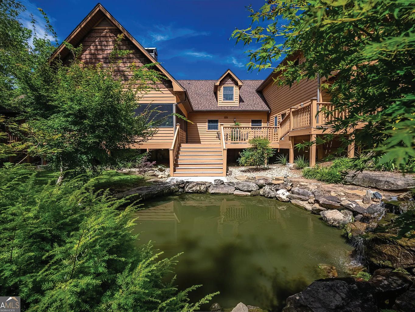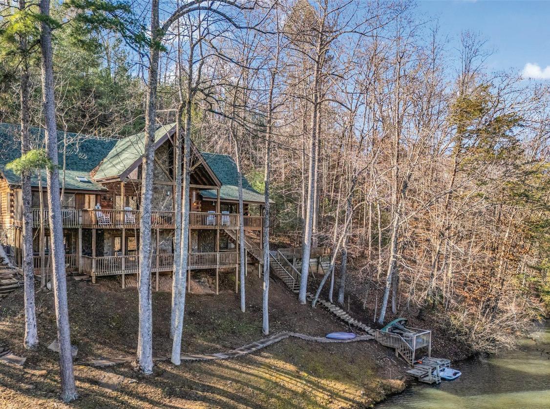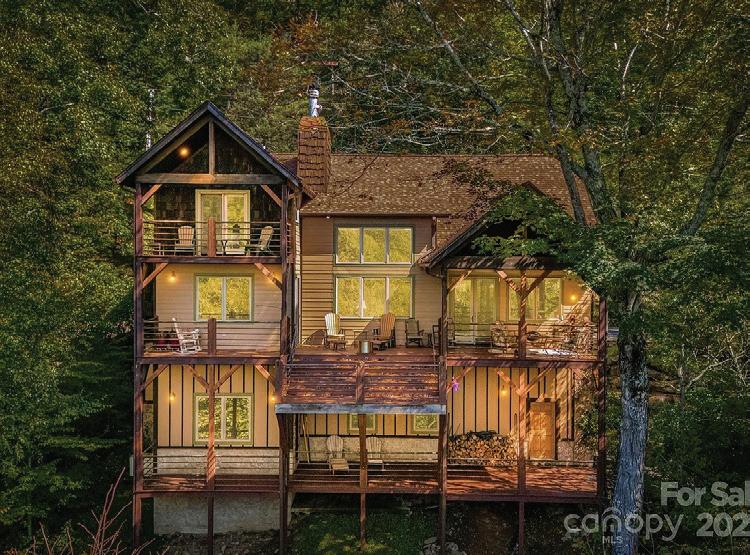 WELCOME TO YOUR VERY OWN 3.32 ACRE PRIVATE PARK - 200’ FRONTAGE ON LARGE CARTOOGECHAYE CREEK - FISHERMAN’S PARADISECATCH TROUT DIRECTLY OFF YOUR PRIVATE DECK OVERLOOKING LARGE, RUSHING CREEK - WALK DOWN YOUR PRIVATE, COMPOSITE, CROSSTIE STEPS INTO WATER WITH YOUR KAYAKS - Home has a NEW ROOF Installed May, 2025 - Huge GARAGE has large Workshop area with Full Bath and Fish Cleaning Station and LED Lighting - NEWLY Updated, 24’ X 24’ All-Season, Porch with Sliders - Majestic, Rock Fireplace and New Gas Logs With Remote - (Gas Logs on porch are removable for use as a Wood-burning Fireplace) - All Underground Utilities - Fiber Optics Cable - White Oak Hardwood Flooring and Tile throughout Main Level - KITCHEN is a Chef’s Delight - NEWER Stainless Steel Appliances - 5-burner Gas Cooktop - SIDE Opening Bosch Double Ovens - Two Drawer FISHER PAYKEL Dish Washer Drawers - Instant Hot Water Dispenser - Trash Compactor - Quartz Counters. MAIN LEVEL OWNER’S SUITE with Private Deck Overlooking Rushing, Cartoogechaye Creek. Second Bedroom/ Office with Full Bath on Main - Half Bath on Main - Two Tankless Hot Water Heaters for the Home (one for Master Bath only) - UPPER LEVEL has Deck overlooking Creek and Koi Pond, Large Living Room, Kitchenette, two additional large bedrooms; each with walk-in closet and built-in desk. See Zillow.com for all Photos and Additional Details.