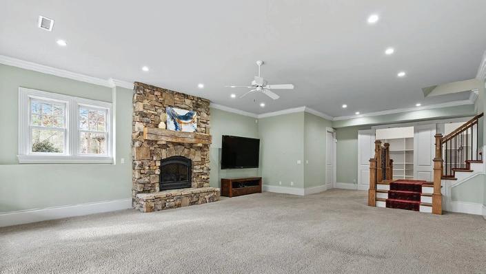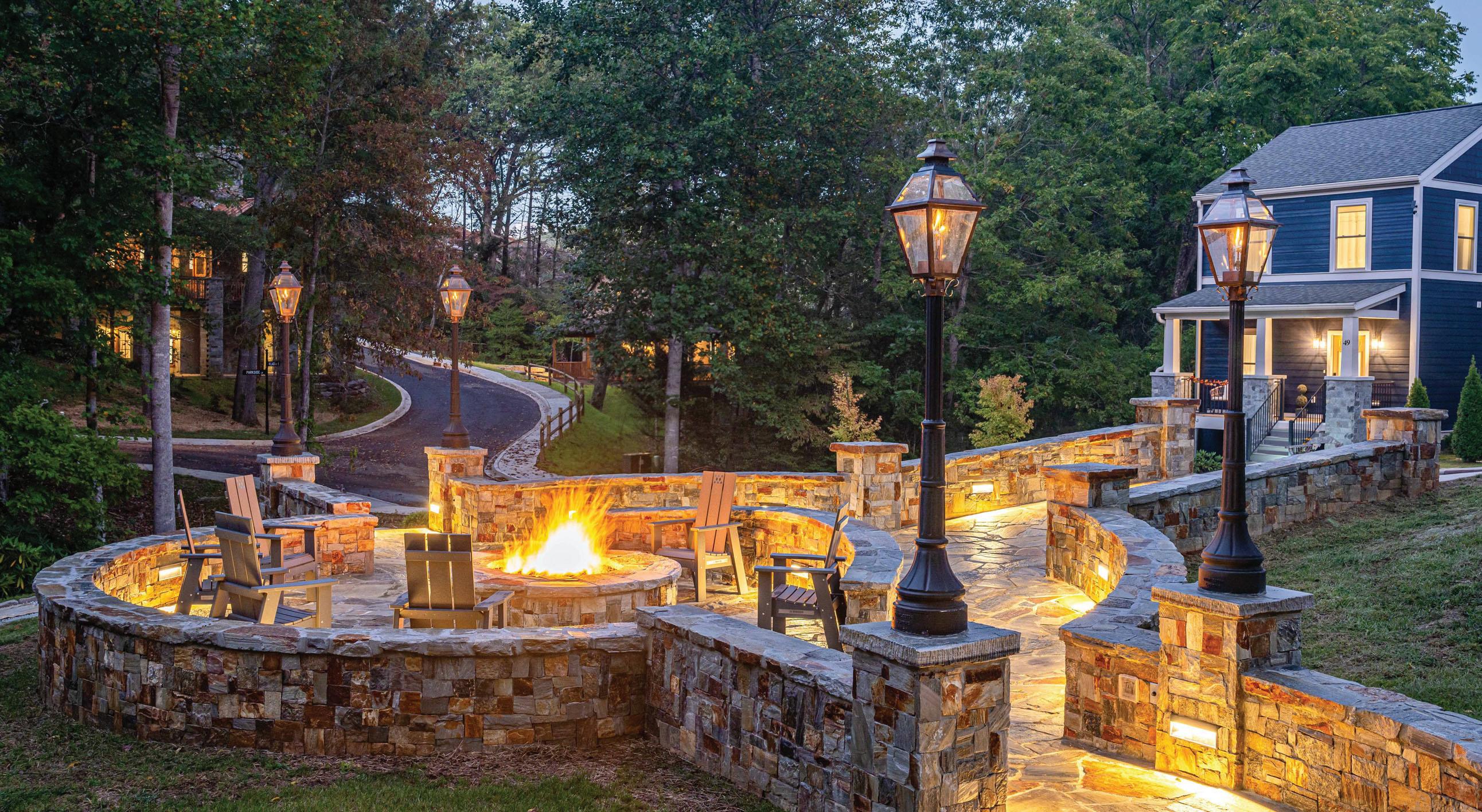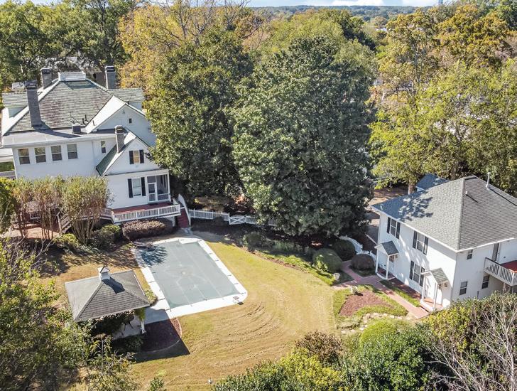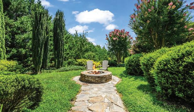 Crafted to complement its natural surroundings, the home’s outdoor spaces capture the quiet elegance of The Ramble at Biltmore Forest, featuring a screened pavilion, a stone fireplace, flagstone terraces and an expansive 25-person alfresco dining area. A lower paver terrace with a sculptural gas fire bowl and boulder seating creates an intimate setting amid the privacy of the wooded landscape, all overlooking the tranquil beauty of Longmeadow Park. A one-of-a-kind estate.