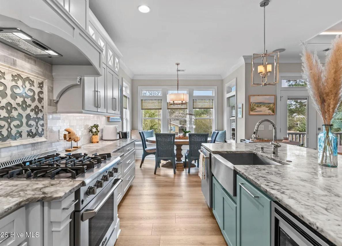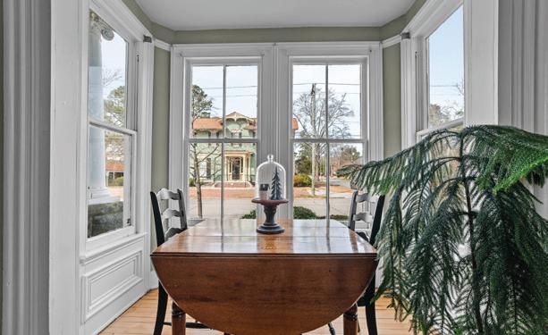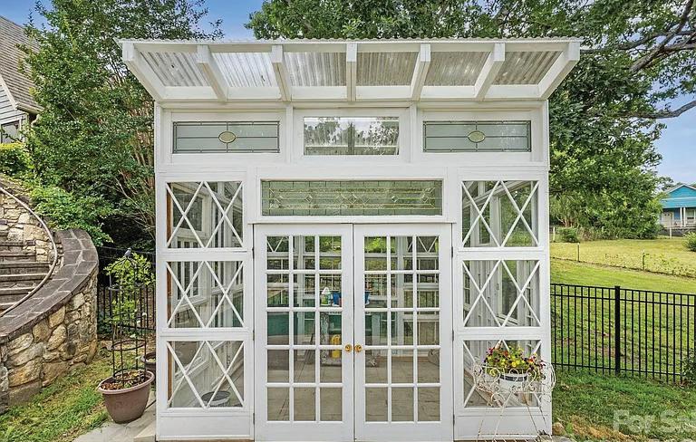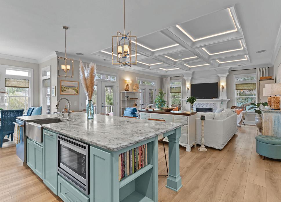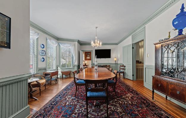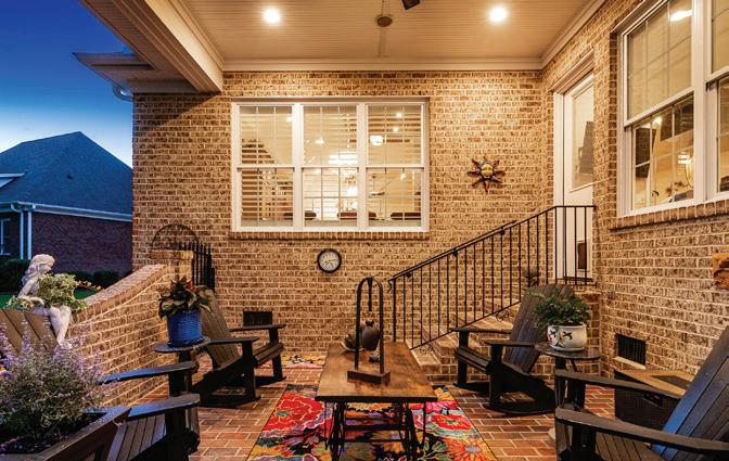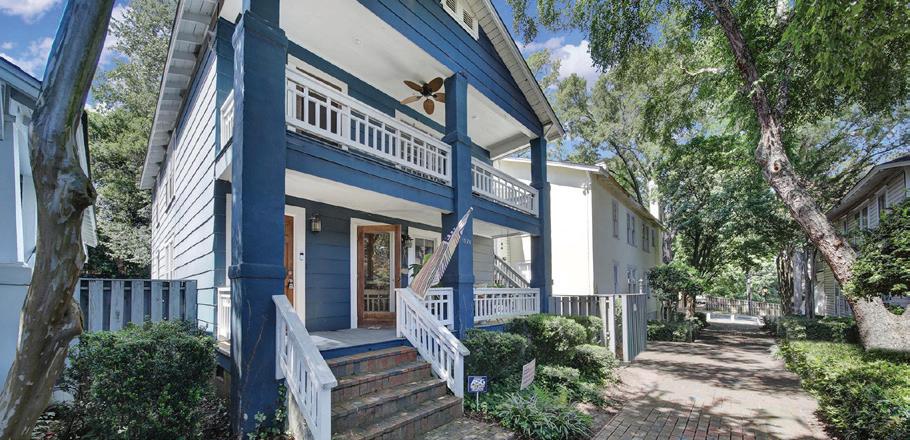 Expansive 3,000 square feet of Haint Blue–painted wraparound porches with Chippendale railings extend the living space, overlooking a backyard designed for both beauty and function. A dedicated culinary production area and 35 varieties of rose bushes provide an exquisite setting for outdoor living.