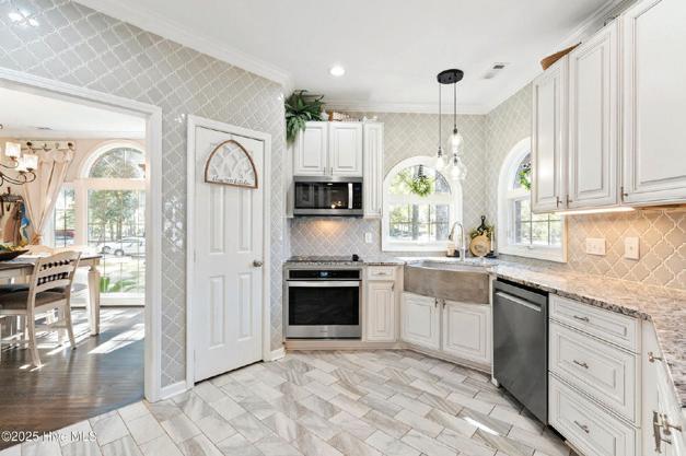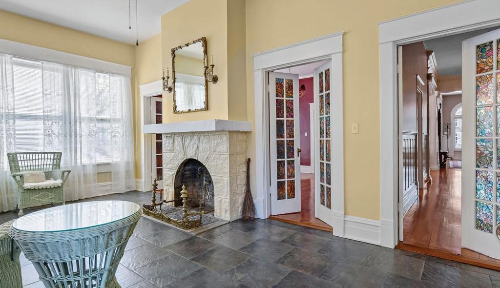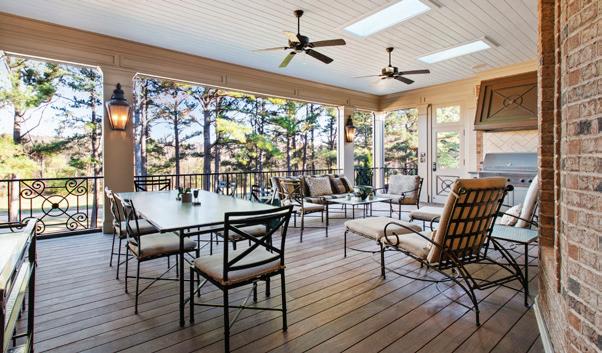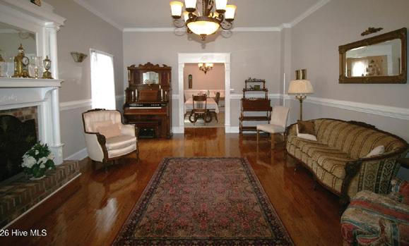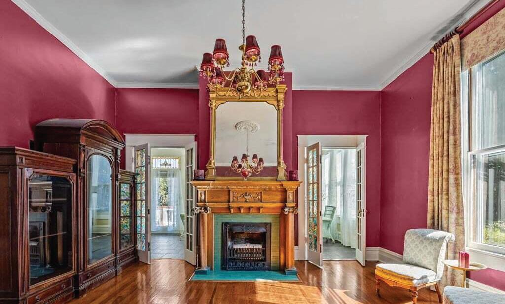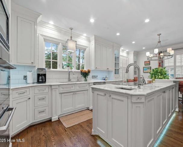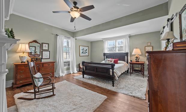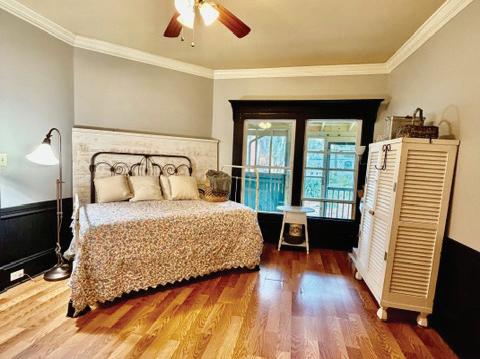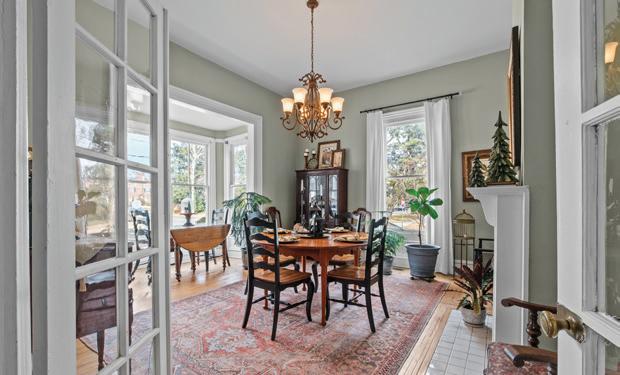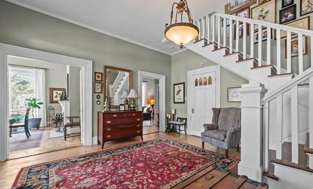 Expansive 3,000 square feet of Haint Blue–painted wraparound porches with Chippendale railings extend the living space, overlooking a backyard designed for both beauty and function. A dedicated culinary production area and 35 varieties of rose bushes provide an exquisite setting for outdoor living.