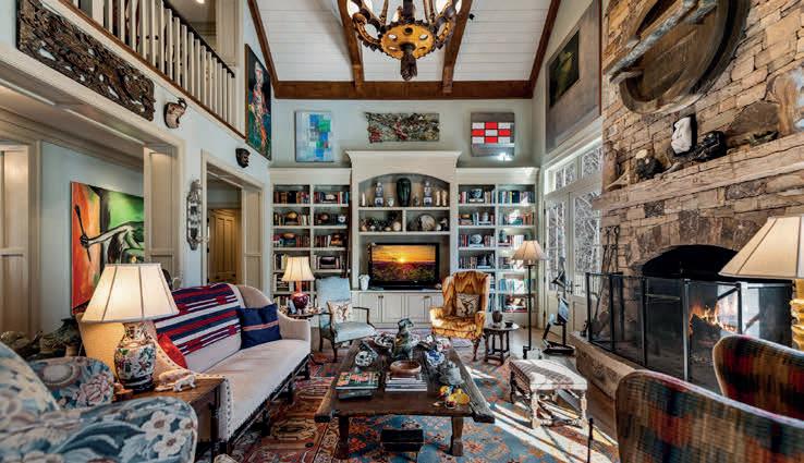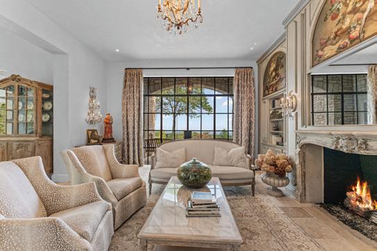 Set amid professionally landscaped grounds, the porte-cochère and medallion-accented motor court, framed by native stone and stucco, create an exterior both grounded and poetic. Three stately chimneys and expansive terraces rise in harmony with the surrounding landscape.