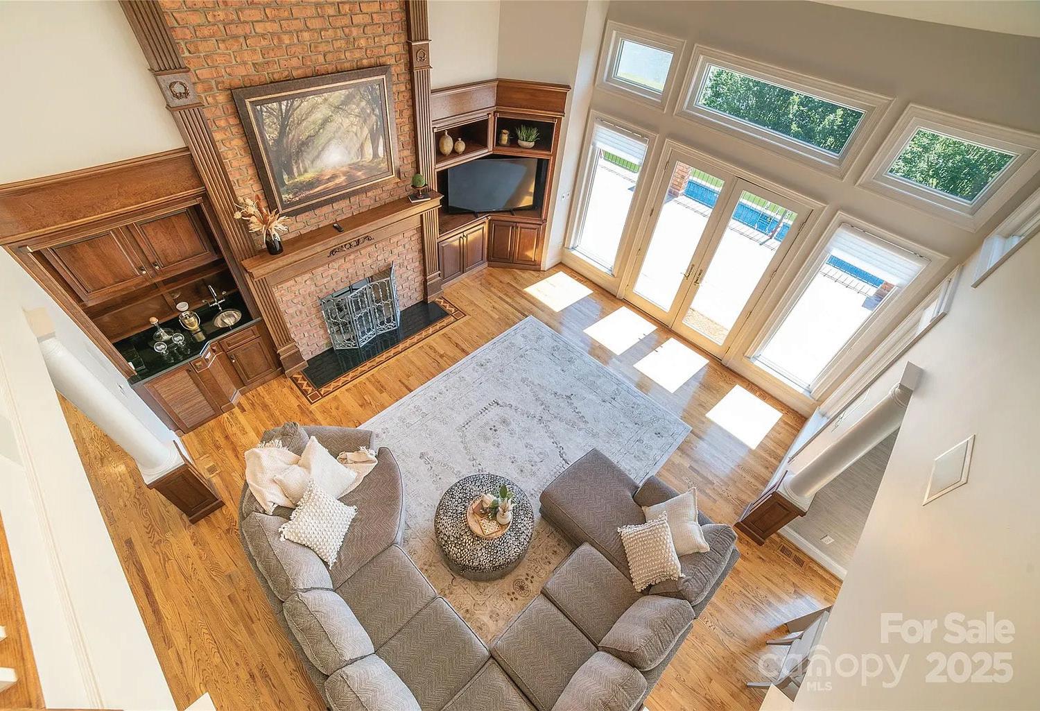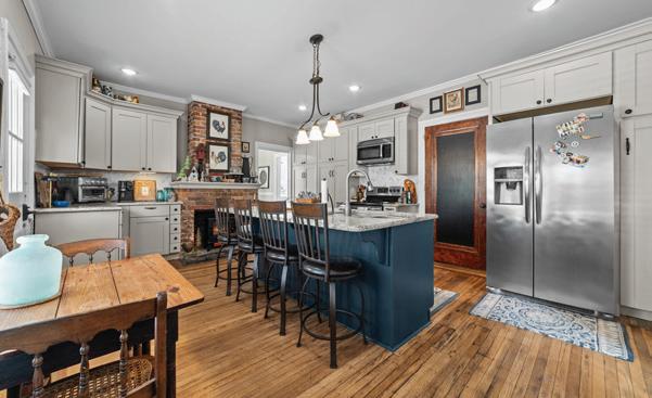 The gourmet kitchen is appointed with high-end appliances and an oversized island, blending function and beauty. A custom glass-walled wet bar and mixology corner adds a touch of sophistication. Six gas fireplaces spread throughout the home provide warmth and ambiance. The lower level is designed for leisure and entertainment, featuring a media room, gaming room, second wet bar, and charming historically referenced brick flooring, which adds timeless character to the space.