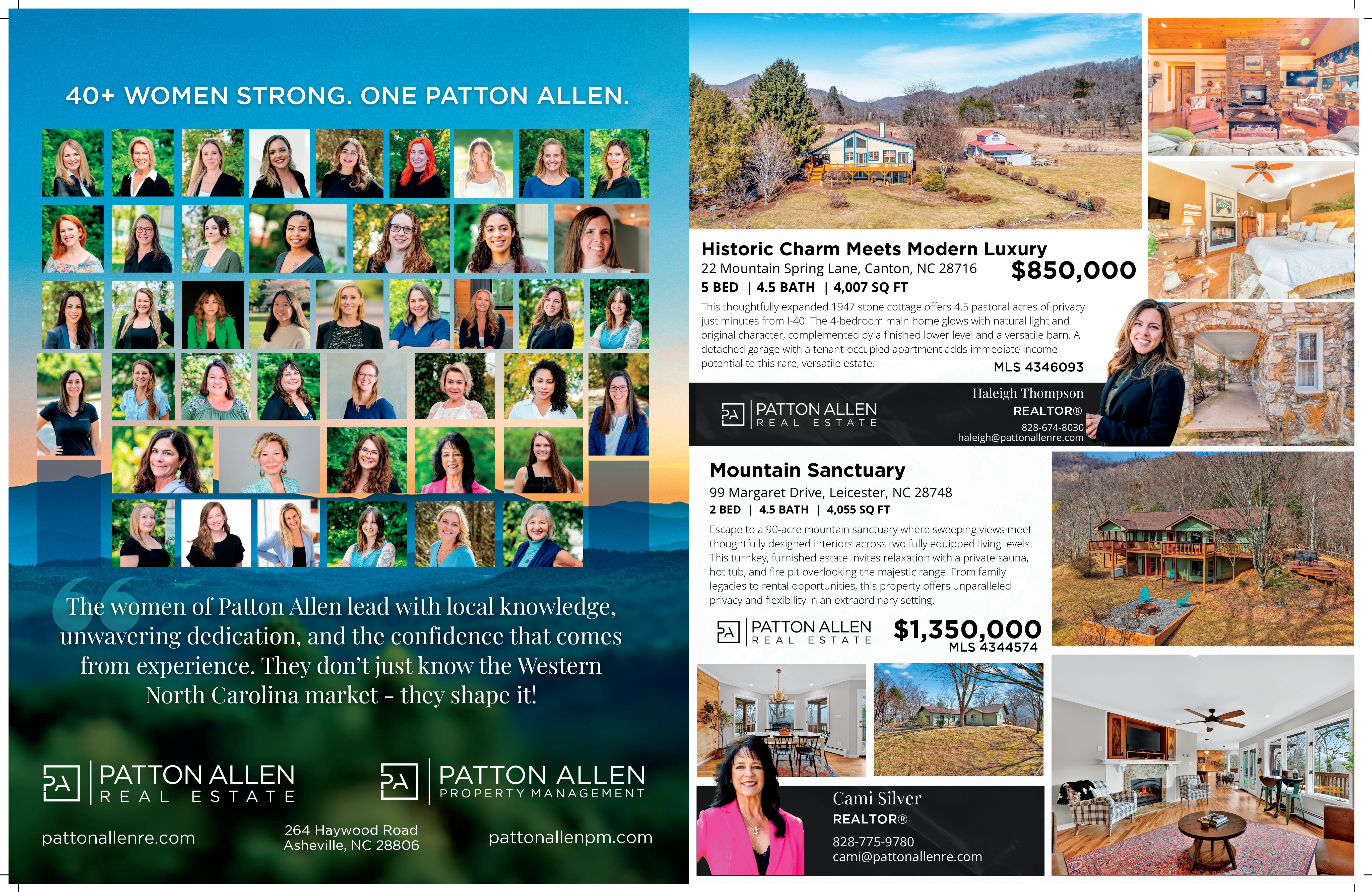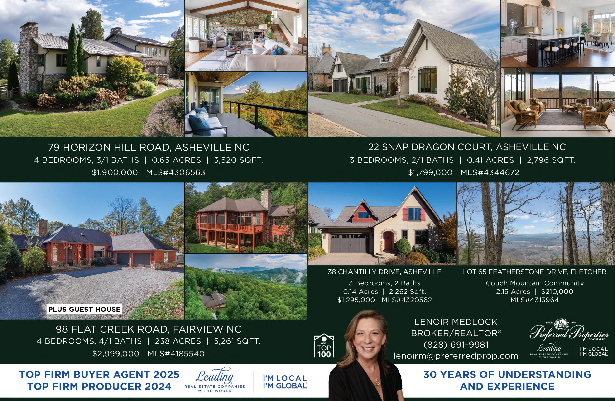 A Legacy Southern Estate Nestled in the idyllic Mills River Valley, this 30-acre estate captures the essence of Southern elegance with a touch of timeless romance. Shaded by a grove of ancient white oaks, the residence evokes the grandeur of a historic manor, blending refined architecture with the serenity of pastoral landscapes. Inside, a chef’s kitchen opens to a dramatic living room anchored by a bespoke fireplace mantel, setting the stage for elegant entertaining. French doors invite you outdoors, where rolling meadows, a charming cottage garden, and a shimmering oneacre stocked pond create a setting of unrivaled beauty. At the heart of the property stands a reimagined barn, now transformed into a sophisticated wedding and event venue. With its graceful proportions and rustic-luxe design, it offers a stunning backdrop for unforgettable celebrations under vaulted ceilings and soft ambient light. Whether hosting candlelit dinners by the water, welcoming guests to a sunset soirée under the oaks, or retreating into the quiet rhythm of country life, this estate offers a lifestyle steeped in charm. 26 COOK LANE, MILLS RIVER, NC 28759