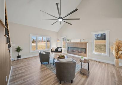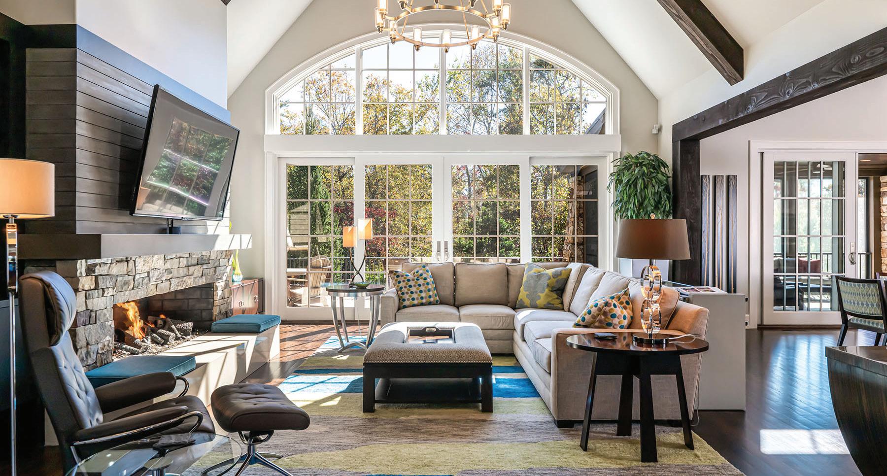 Soaring ceilings, dramatic arched window framing the mountains, covered porch for sunset views, and quality craftsmanship throughout.