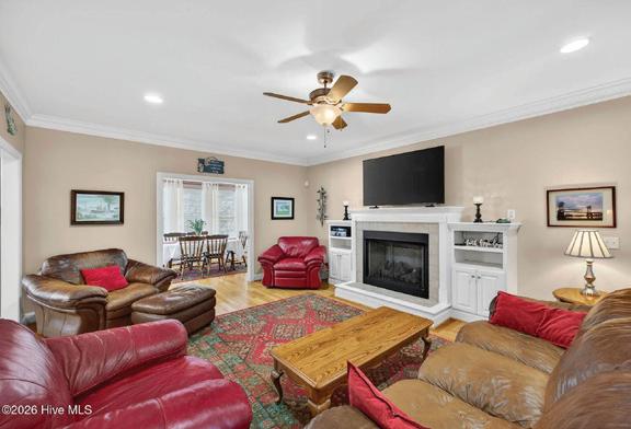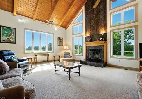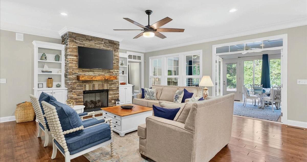 Tucked away from the bustle, this remarkable Coastal Cape home offers tranquil natural surroundings just 9 miles from the nearest hospital—making it an exceptional choice for a peaceful retirement or restful retreat. Superior craftsmanship and meticulous attention to detail are evident throughout this artfully designed home. A welcoming covered entry, double dormers, decorative windows, and whimsical porch railing create enduring curb appeal. Inside, the open great room features a cozy fireplace, dining space, and generous kitchen island—ideal for entertaining. A built-in oven and gas range delight any chef. The main-level primary suite offers single-level