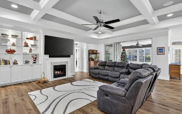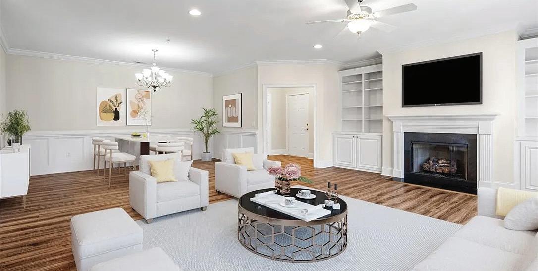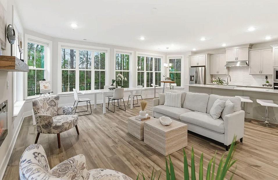 $1,690,000 | Rare south-facing home in the 22-unit Settlers Place overlooking lush greenery, with three private patios and skyline views. Renovated with refined finishes, a coffered great room, and a chef’s kitchen featuring Wolf and Sub-Zero appliances. Secure entry, parking, EV charging, and storage complete this elegant lock-andleave retreat.