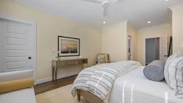The second level is home to two grand primary en-suites, each with bespoke luxury features including sublime dressing rooms, custom closets, and private porch access. This level also includes a private den, office, library, kitchenette, and craft room, creating a self-contained domain of comfort and refinement. The third level offers two additional en-suite bedrooms, ensuring space and privacy for family or guests.