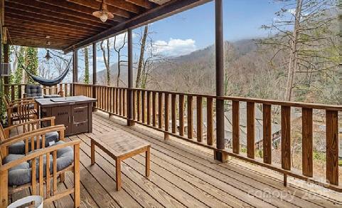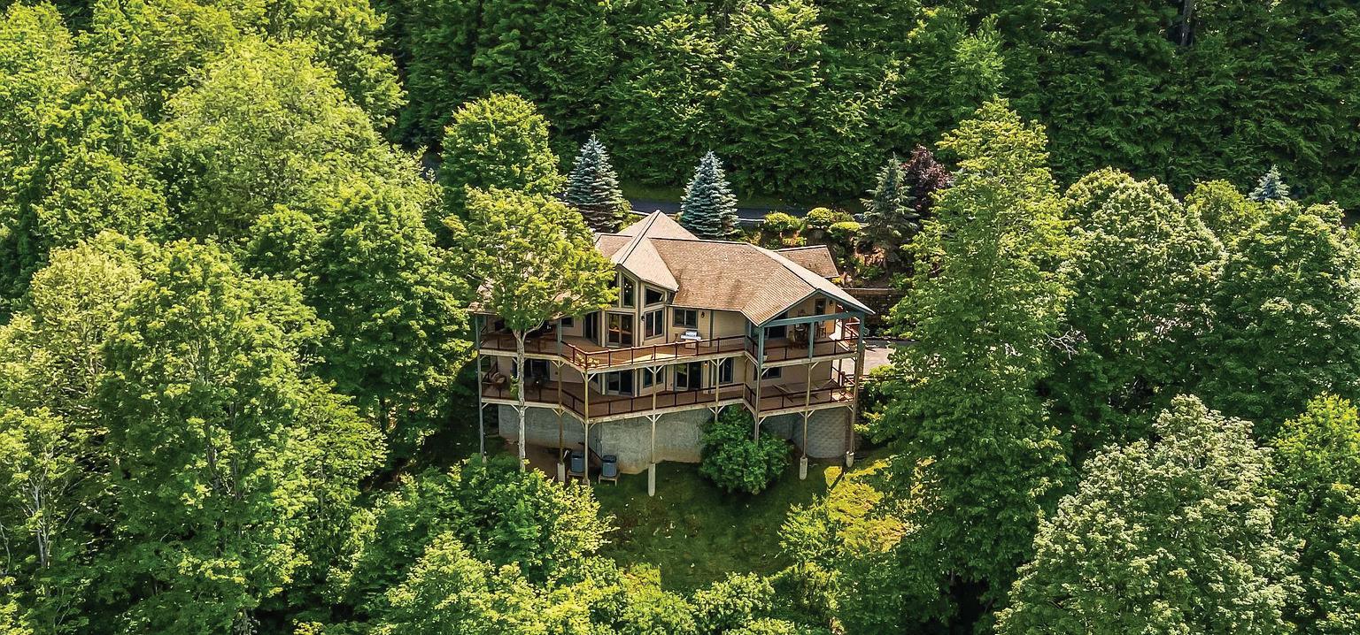 Perched @ 4,100 feet inside Wolf Laurel’s 5,300-acre gated community, 191 Ivy Way delivers what buyers rarely find together, year-round, long-range mountain views from your home, plus a lacework of small creeks across the lower acreage. An oversized garage for large vehicle storage, this is, a unicorn. The property spans six contiguous lots totaling 3.4 acres amid native rhododendron, hardwoods, and wildflowers that bloom from spring to fall, with a beautiful four bedroom home suitable for year-round living. A welcoming foyer opens to a vaulted great room anchored by a floor-to-ceiling stone fireplace, flowing into the dining area and a gourmet island kitchen with granite, gas range, and generous storage. Designed for ease, the main level holds the primary bedroom with ensuite bath. Guest bedroom and half bath, an office, laundry, and expansive covered decks that live like outdoor rooms. Upstairs are two additional bedrooms and a full bath, with one bedroom opening to a private balcony with mountain views and the constant lullaby from the creeks.