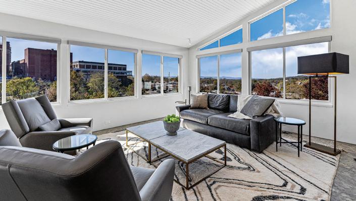Timeless elegance and modern ease define this magnificent downtown Asheville home offering the highest level of luxury with design by George Studio, Inc, (NY) architecture. Custom details include wide plank flooring from France, marble baths by Ann Sacks, Venetian plaster walls, and Holly Hunt lighting. The soaring great room offers exposed beams and brick, highlighted by an expansive library wall. The large stainless kitchen and island compliment the open concept of this home. Enjoy two primary suites with stunning baths and a bright and sunny day room with views of downtown Asheville and the mountains beyond. This HGTV Award winning home includes a climate-controlled garage with four parking spaces and two large storage rooms. There is private direct elevator access to this reconstructed Richard Smith Building, (Architect of the Biltmore) condo with one-level living. Walk to Harris Teeter, Whole Foods, Trader Joe’s. Outstanding luxury, striking from every angle!