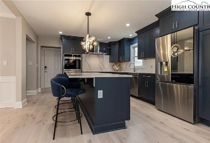 Perched at one of the premier elevations within the exclusive Elk River Club, this 4-bedroom, 3.5-bath mountain contemporary residence is a masterclass in craftsmanship. Designed to blur the line between luxury and nature, the home utilizes soaring glass walls and expansive decking to frame breathtaking, long-range vistas of the Blue Ridge Mountains stretching across North Carolina and Tennessee. The entry level is designed for both high-end entertaining and quiet retreat. The gourmet kitchen and dining area are a chef’s dream, while dramatic tongue-and-groove ceilings and rich hardwood flooring anchor the great room. The Primary Suite serves as a private sanctuary, complete with its own fireplace. Living spaces transition seamlessly to covered and open-air outdoor areas—perfect for soaking in mountain sunsets. The versatile lower level serves as a secondary hub for guests and recreation, featuring a central family room with a custom bar and a dedicated game area. Accommodations include a junior primary suite and two additional bedrooms, with a shared bath. Every inch of this estate reflects meticulous attention to detail, from the intricate wood trim to the sophisticated material palette. This isn’t just a home; it’s the realization of a lifestyle dream in one of the High Country’s most prestigious communities.