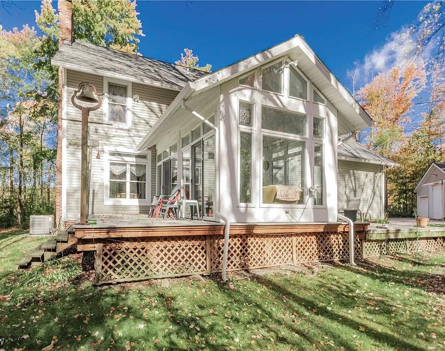 $294,900 | Private 4.5-acre North Ridgeville Cape Cod offering open green space and woods, fresh paint, three bedrooms, two kitchens, two baths, basement walkout, covered pavilion, hobby-farm potential, and peaceful country feel with easy highway access nearby.