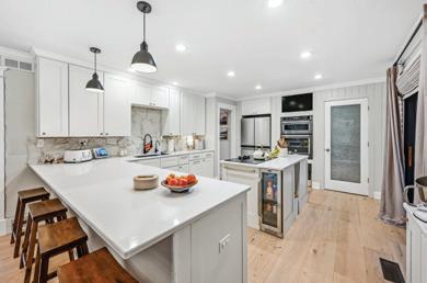 STUNNING, COMPLETELY RENOVATED OPEN FLOORPLAN RANCH! Exquisite taste and meticulous attention to detail define this luxury home. New European White Oak flooring flows seamlessly throughout the main level. The Family Room offers a warm ambiance with a beautiful brick fireplace, enhanced by a cathedral ceiling and skylights that effortlessly bring the outdoors inside. The Gourmet Kitchen, renovated this year, is a true pleasure, boasting premium Quartz counters, soft-close cabinets, and a built-in range and oven. Retreat to the luxurious Primary Suite, which features a spa-like master bath and a highly functional Red Oak closet system, ensuring your mornings are stress-free and evenings are relaxing. Over 3,500 finished square feet.