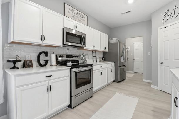 Why wait 6- 9 months for new construction when refined living awaits in this impeccably designed 4-bedroom, 2.5-bath residence in Sugar Farms? From the first glance, it’s clear this home achieves the best of both worlds—modern sophistication blended with inviting comfort. The chef-worthy kitchen anchors the main level with KitchenAid stainless steel gas appliances, bright white cabinetry, quartz countertops, subway tile backsplash, and an expansive island ideal for gathering, prepping, and presenting. Natural light pours through generous windows across 9’ ceilings, illuminating an open concept that flows beautifully between dining, lounging, and everyday living spaces. A main-level laundry and powder room add thoughtful convenience. Upstairs, the primary suite delivers a true retreat—complete with a spa-inspired bath featuring a walk-in tile shower, dual vanity, and an oversized walk-in closet. Three additional bedrooms, a shared full bath with double sinks, and a spacious loft provide room to live, host, and retreat