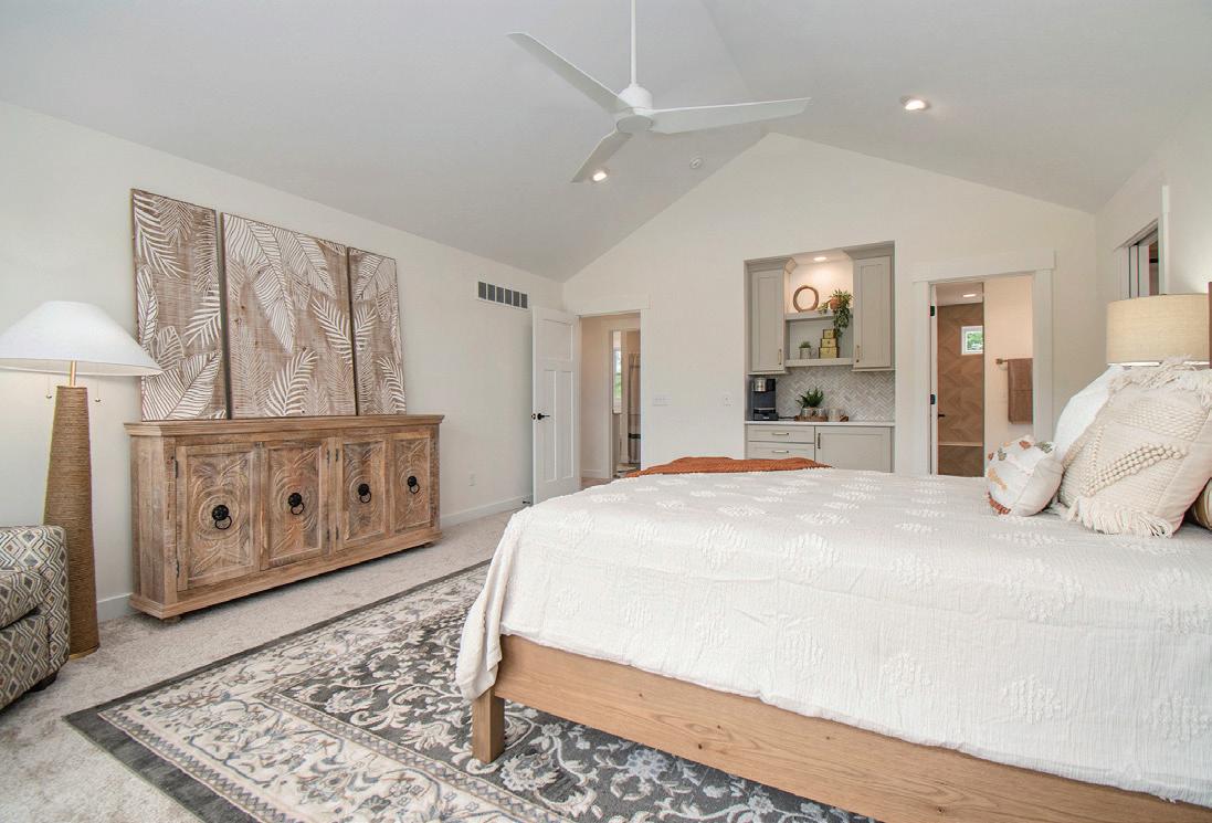 As you make your way to the upper level, you will discover 2 guest bedrooms and full bath with quartz countertops, high-end fixtures and an upper-level laundry. The luxurious primary bedroom comes complete with a custom-built walkin closet, and an elegant on suite bathroom, this comes with a dual quartz vanity and a dual ceramic tiled shower. The primary bedroom also has its own custom coffee bar, what a great way to start your day.