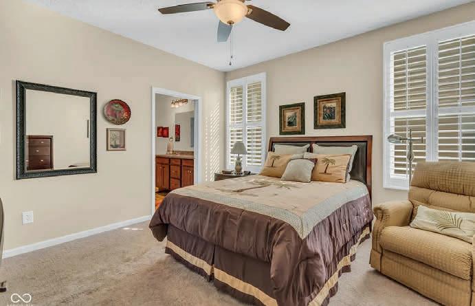 Welcome to your low-maintenance retreat in Carmel, IN. This charming condo offers a unique opportunity for luxury living with an included Social Membership to The Bridgewater Club! Key Highlights: Dual Primary Suites: Perfect for roommates, guests, or a convenient home office setup. The upper floor features two large Primary Bedrooms, both with ensuite bathrooms and walk-in closets. A dedicated laundry room is also conveniently located on this level. Open Living with Views: The main floor boasts a bright, open concept living space, combining an updated Kitchen, Dining area, and Great Room. Step out onto the private balcony or enjoy peaceful pond views from the Kitchen. Flexible Space: The lower level provides a versatile bonus room, ideal for a den, home office, or media room. Modern Flooring: Enjoy the contemporary appeal of laminate hardwood floors throughout the entire home-no carpet anywhere, even on the stairs! Updated Light Fixtures: The home feels cozy, contemporary and inviting. The Social Membership provides access to the acclaimed Bridgewater Club amenities, including the Pete Dye Executive Golf Course (9-hole), indoor/outdoor pools, a 15,000 sq. ft. fitness center, six tennis courts, six pickleball courts, and multiple dining options. Live the resort life without ever leaving home!