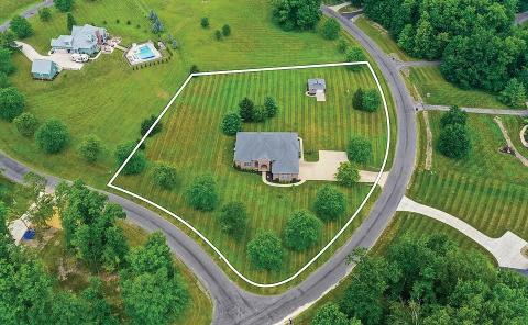 This serene 6-acre oasis north of IU Stadium offers privacy, mature trees, and a tranquil setting. Features include a renovated barn with a changing area and half bath, an upper-level flex space, and wooded trails near Griffy Lake. Inside, expansive rooms with high ceilings, fireplaces, and ceramic tile create warmth and elegance. The gourmet kitchen boasts custom cabinetry, premium appliances, a walk-in pantry, and a large island. The home includes spacious dining and living areas, a library with custom shelves, a luxurious primary suite with pool access, plus two en-suite bedrooms, a laundry room, and a half bath.