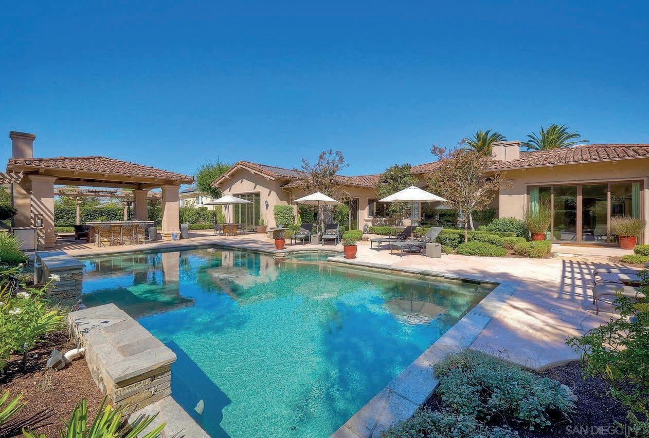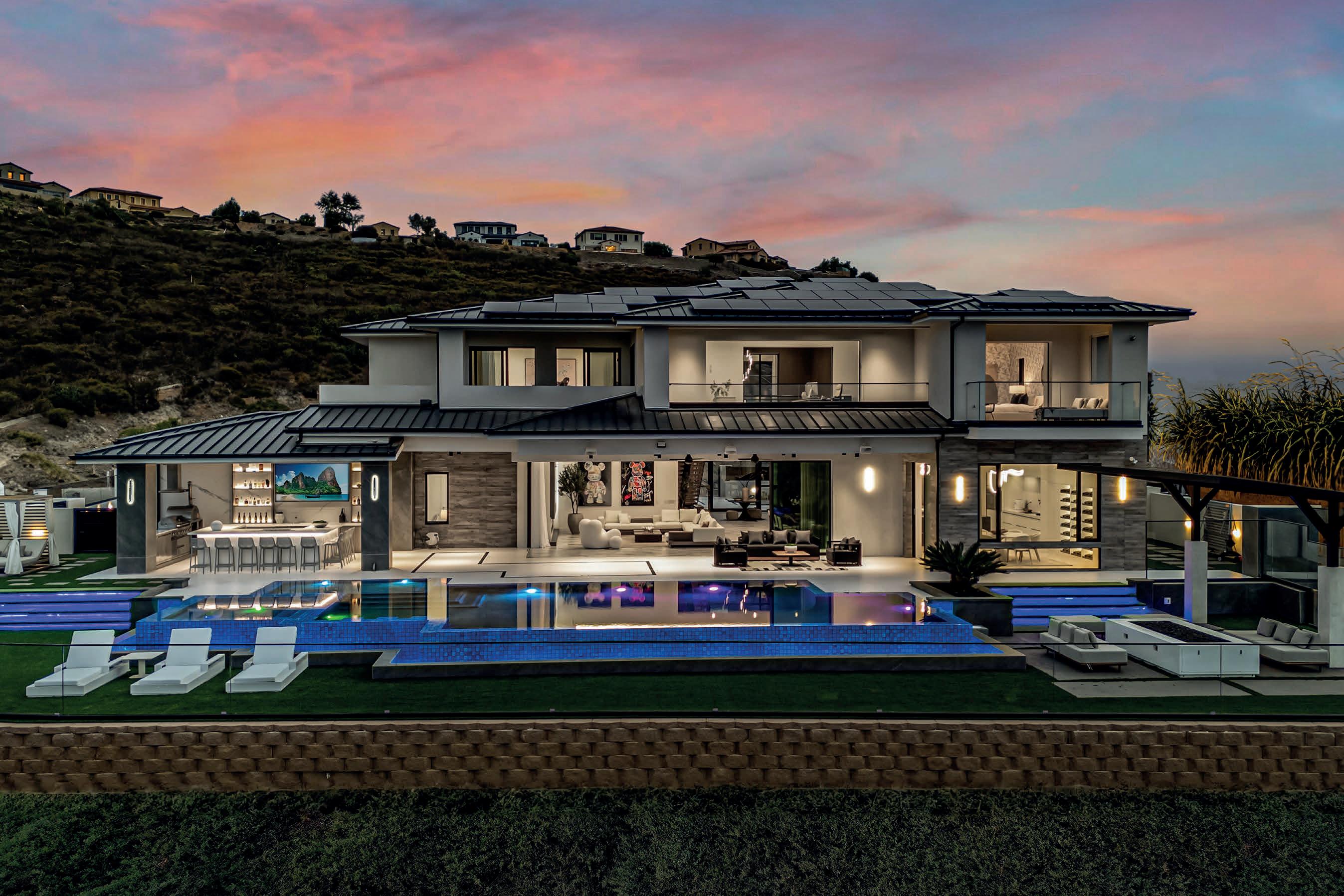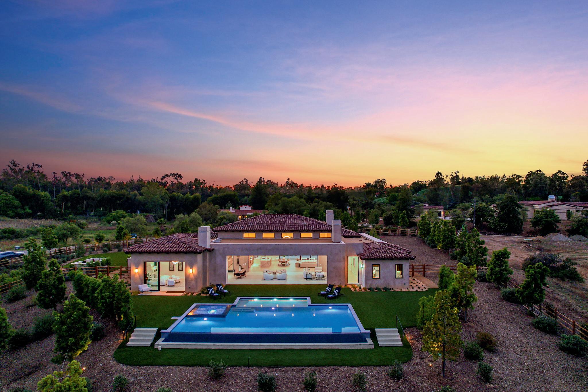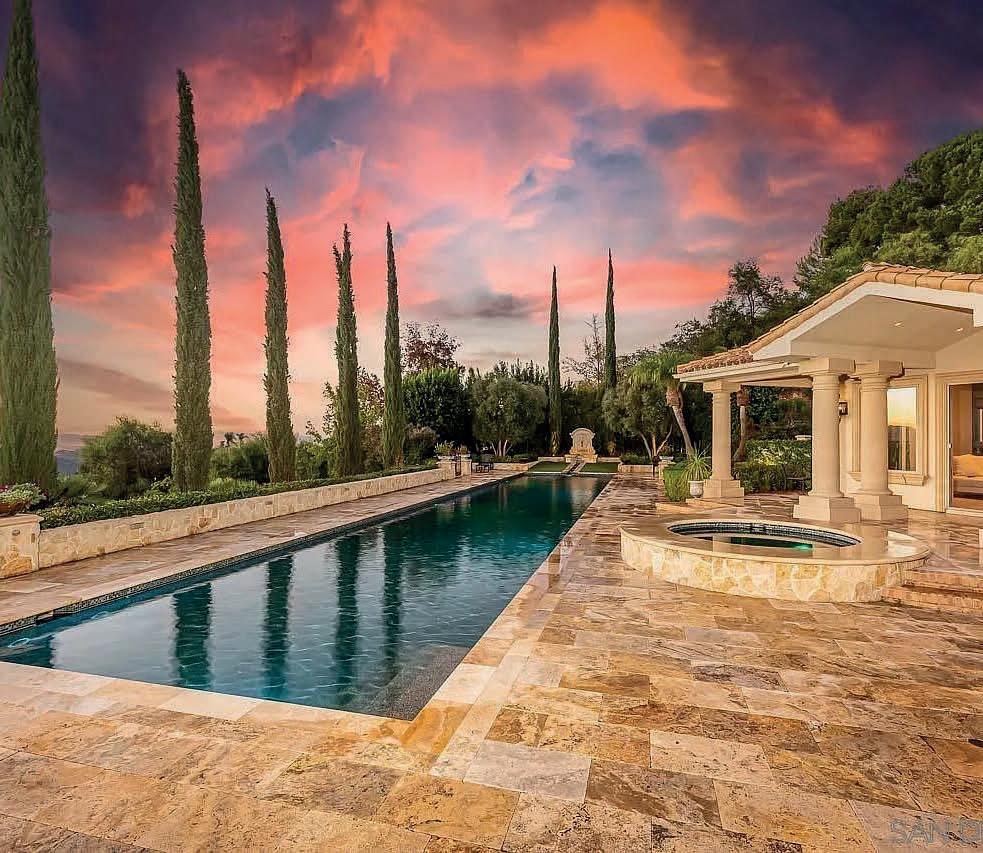 Welcome to your dream home, an exquisite 6-bedroom, 6.5-bathroom masterpiece situated at the highest peak of the prestigious Cielo community in Rancho Santa Fe. Nestled in a serene cul-de-sac, this stunning new construction spans an impressive 7,650 square feet and offers unparalleled luxury and breathtaking panoramic views. The open-concept design features expansive glass doors and windows that flood the home with natural light, seamlessly connecting the indoor and outdoor spaces, complemented by luxurious granite and porcelain finishes. The living area opens completely to the stunning backyard, where you can immerse yourself in the beauty of the grand pool and hot tub, all while soaking in the gorgeous views. This outdoor space is an entertainer’s paradise, featuring a covered bar, built-in grill with pizza oven, and a luxurious fire pit, perfect for gatherings under the stars. Additional highlights of this exceptional property include an elevator for easy access to all levels, a spacious 4-car garage, one golf cart garage, and a large private driveway. Located within a gated community with 24-hour guard service, you can enjoy peace of mind and privacy. Residents of Cielo have access to full amenities, including