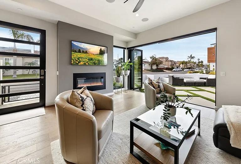 3 BEDS • 4 BATHS • 3,226 SQFT • $3,325,000 Welcome to this exceptional custom-built residence, ideally located less than a mile from the beach and just a half-mile from vibrant Main Street. This thoughtfully designed three-story corner home offers expansive, light-filled living spaces that seamlessly blend indoor and outdoor areas, making it perfect for both entertaining and relaxing. Impeccably maintained, this home boasts numerous upgrades and an abundance of natural light thanks to its prime corner position. The second floor features three generously sized bedrooms, a media center, and a spacious laundry room. On the main floor, the gourmet kitchen stands out with a striking oversized island and custom cabinetry, creating a perfect space for cooking and gathering. All windows are fitted with adjustable privacy shades to control light and ambiance. The garage is outfitted with custom wall-to-wall cabinetry and includes an additional refrigerator. The bi-fold front window/door opens the family room directly onto the front patio, offering a seamless connection to outdoor living.